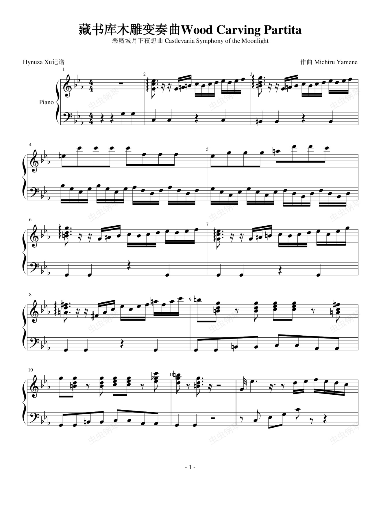 钢琴谱:恶魔城月下夜想曲BGM木雕变奏曲