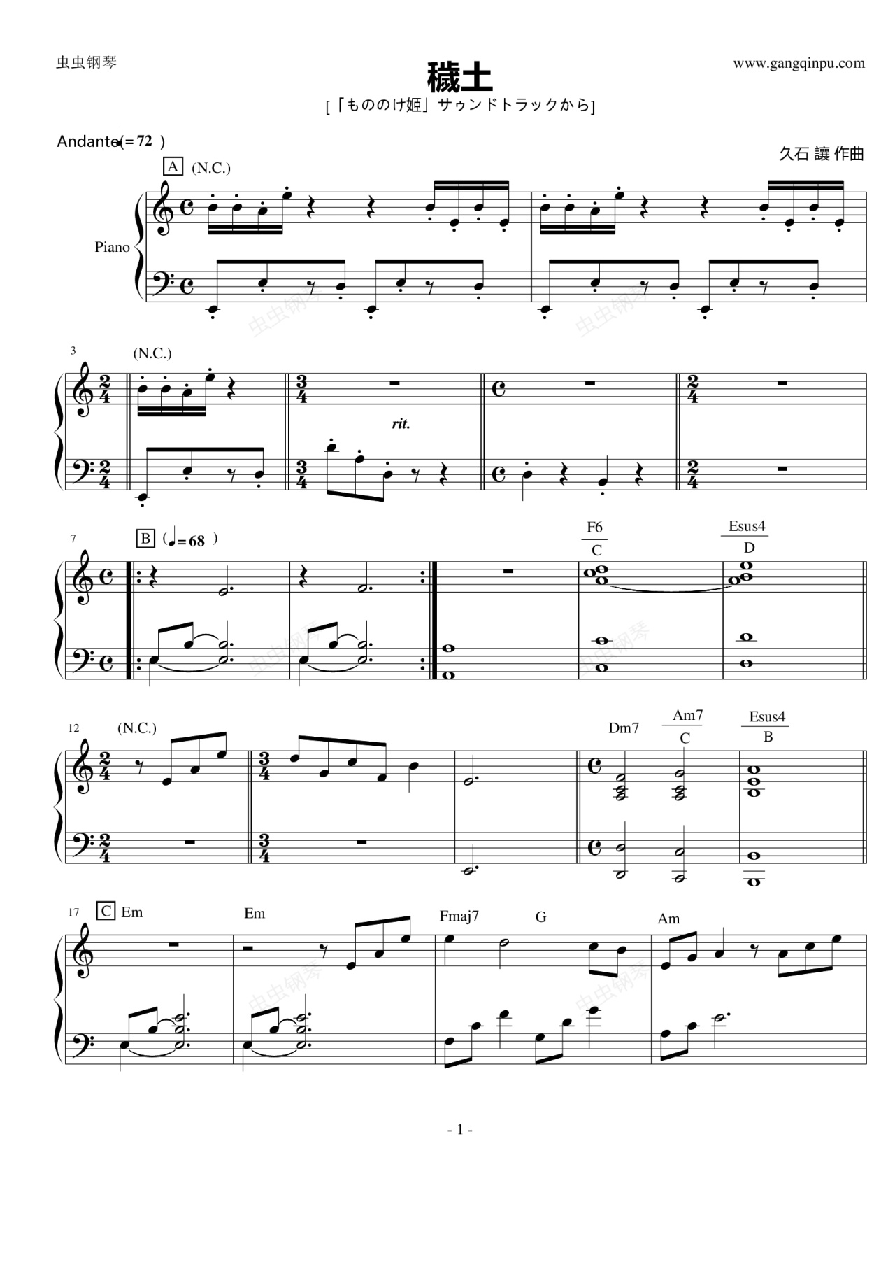 钢琴谱:《幽灵公主》原版配乐-4.穢土