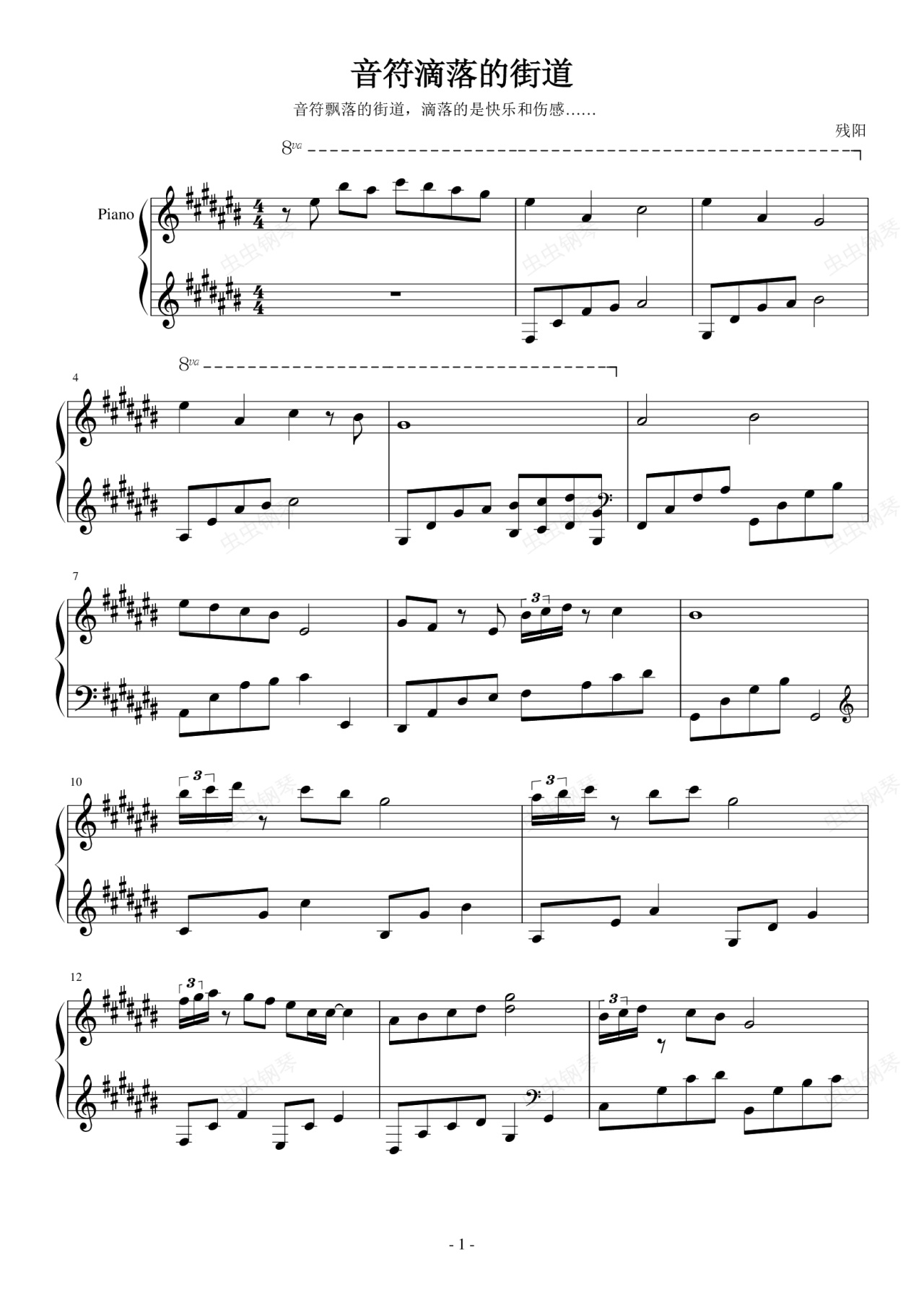 钢琴谱:音符滴落的街道