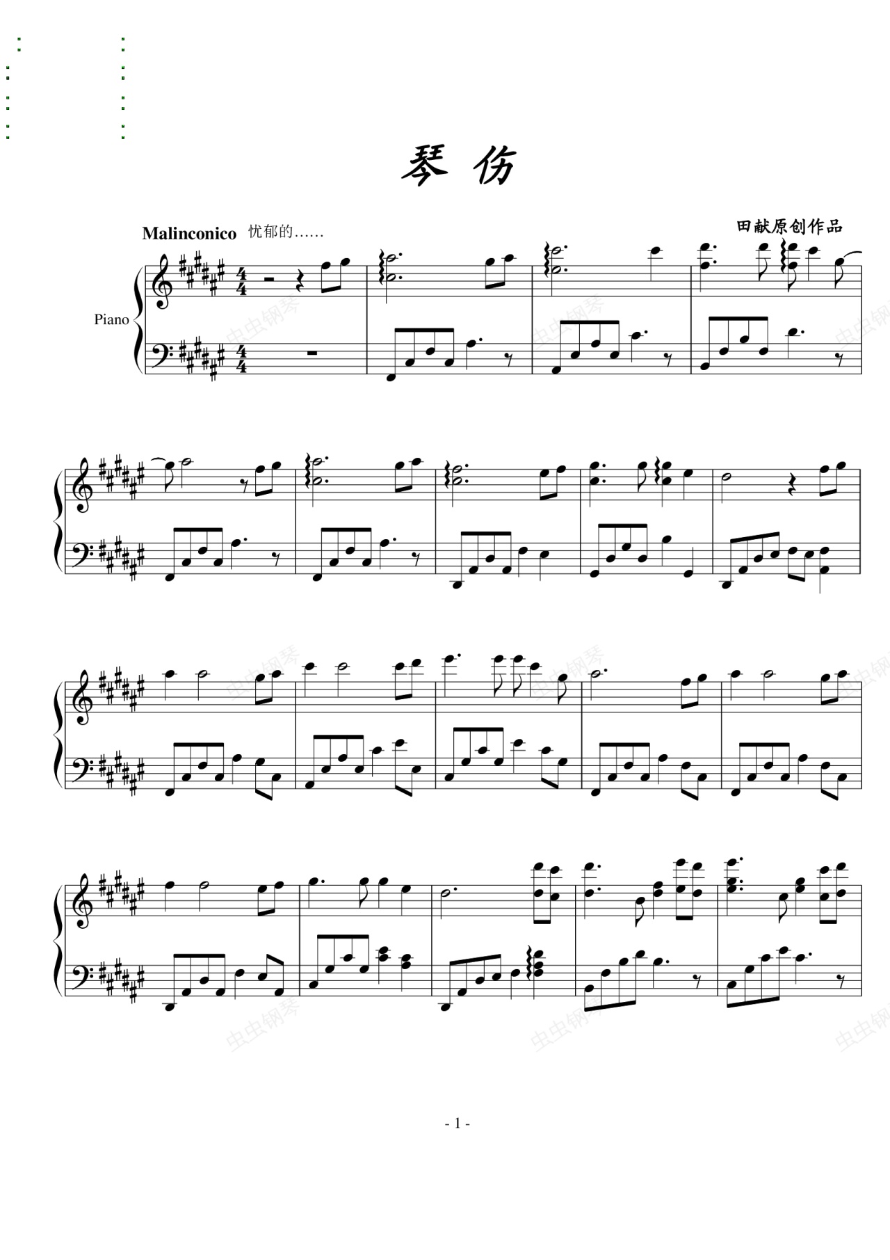 钢琴谱:琴伤