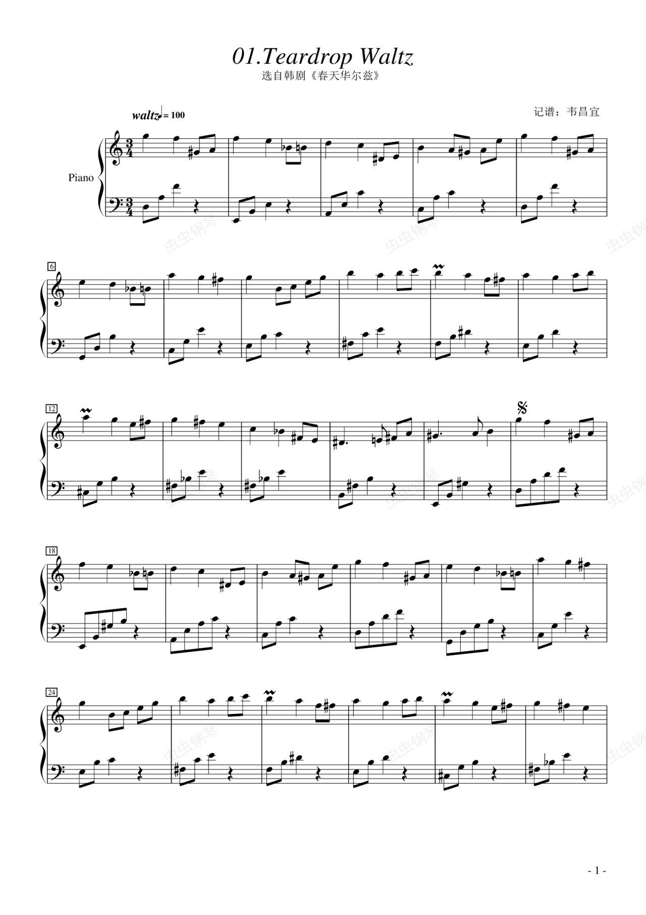 钢琴谱:春天华尔兹