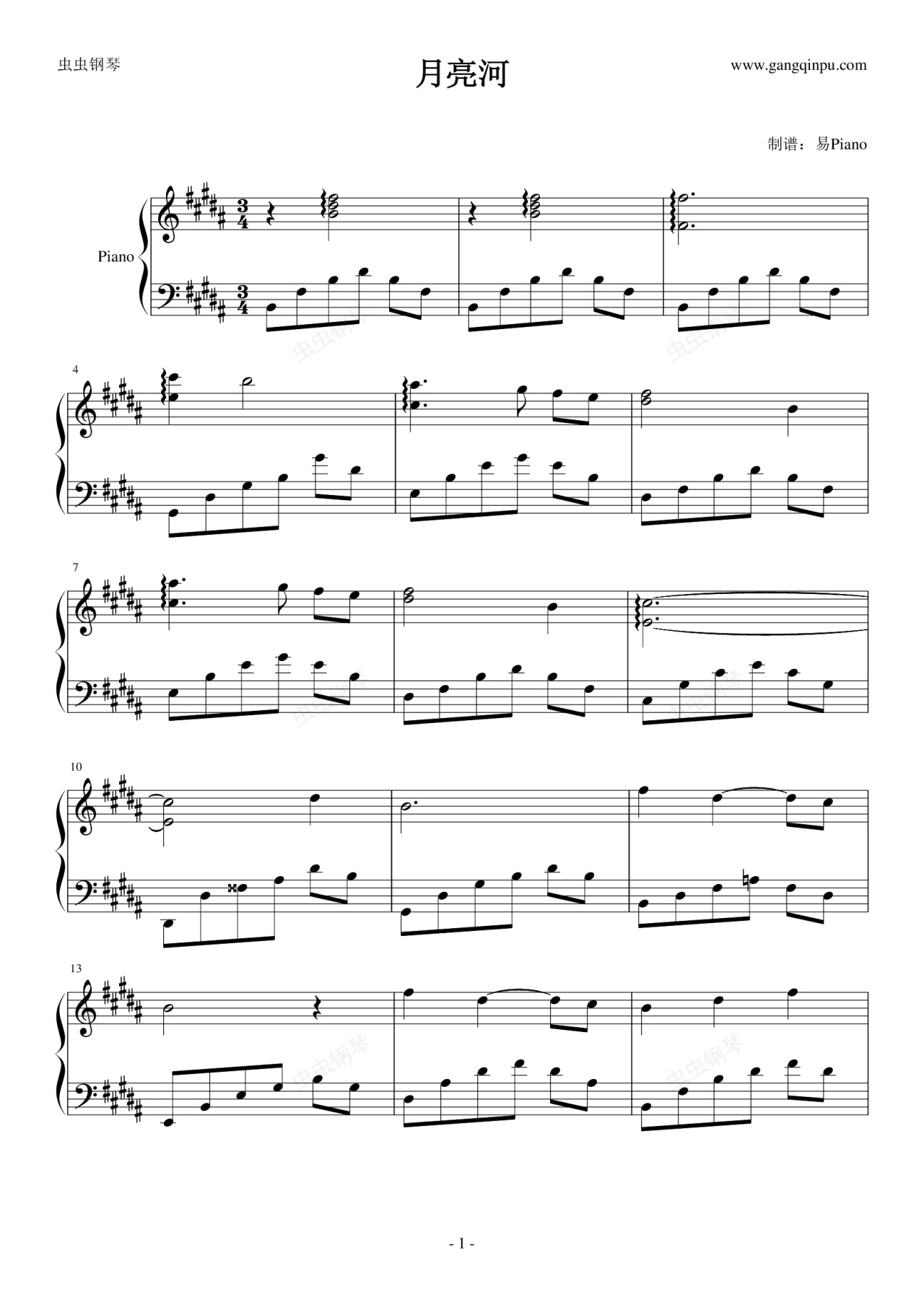 钢琴谱:月亮河