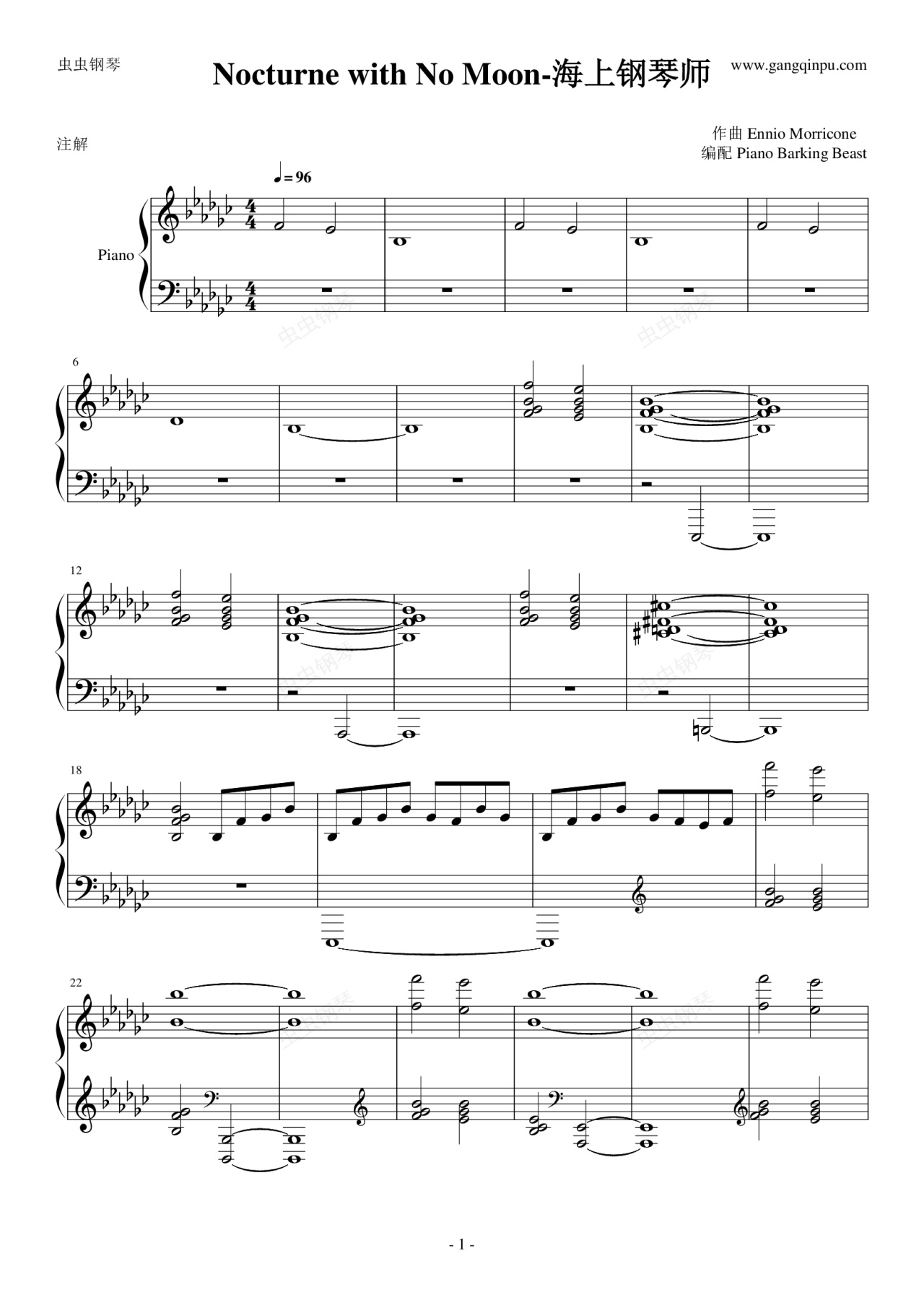 钢琴谱:Nocturne with No Moon