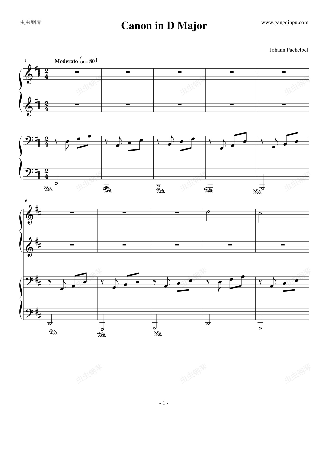 钢琴谱:卡农四手联弹-Charm改编版