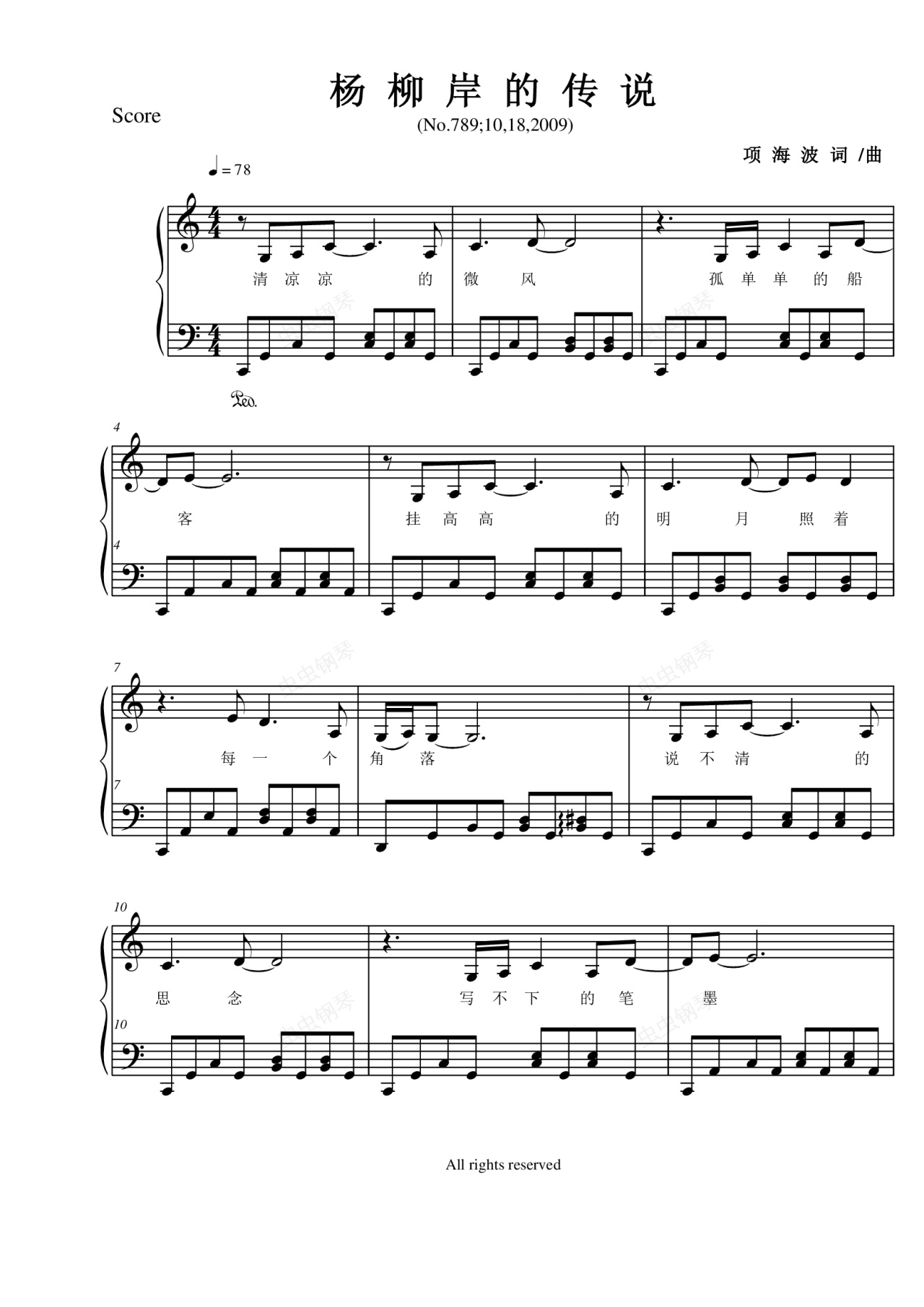 钢琴谱:杨柳岸的传说(央视中秋晚会歌曲)