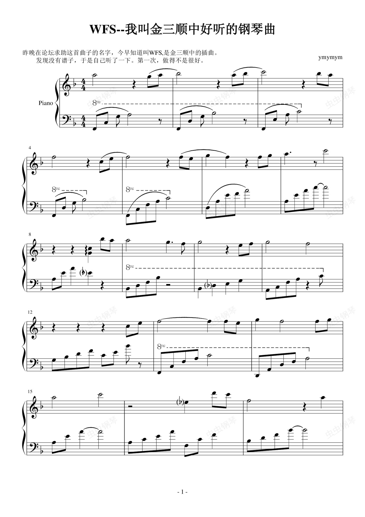 钢琴谱:WFS--金三顺中一首好听的钢琴背景插曲
