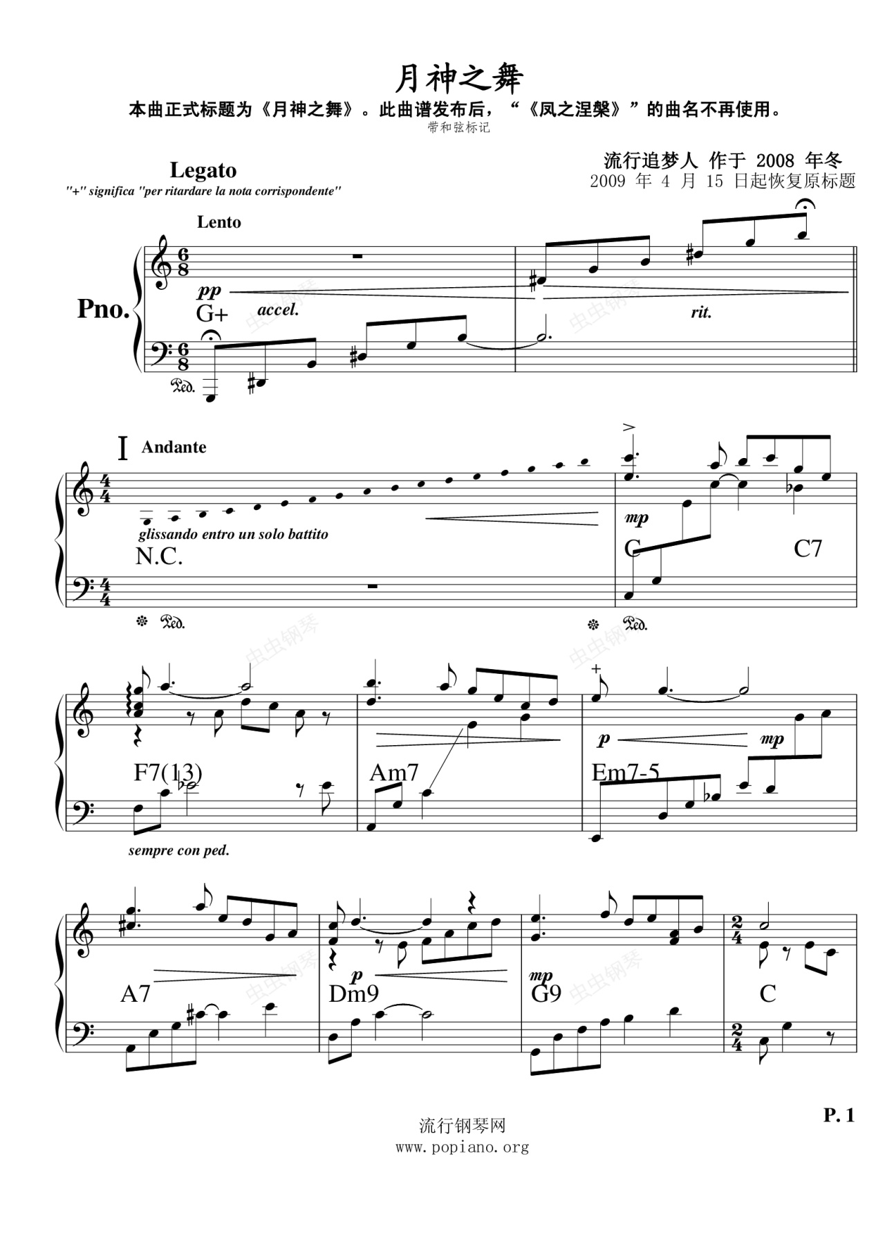 《月神之舞》(原《凰之涅槃》),于 2009 年 4 月 15 日恢复曲名并加入和弦标记的版本。