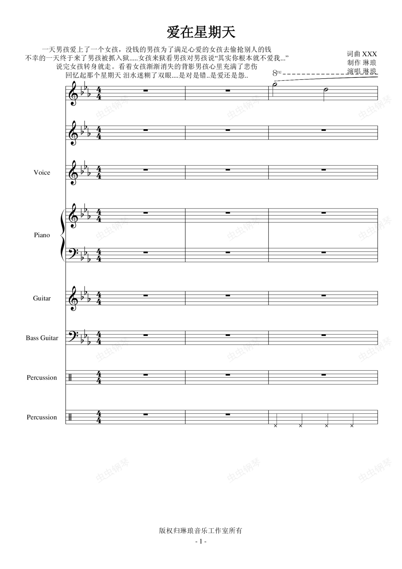 钢琴谱:爱在星期天