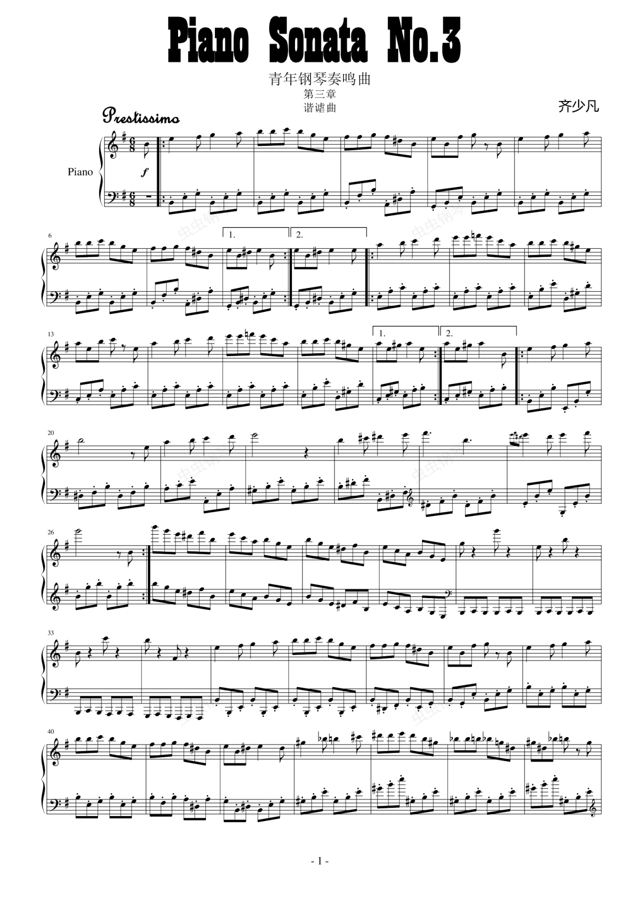 钢琴谱:第三钢琴奏鸣曲(谐谑曲)