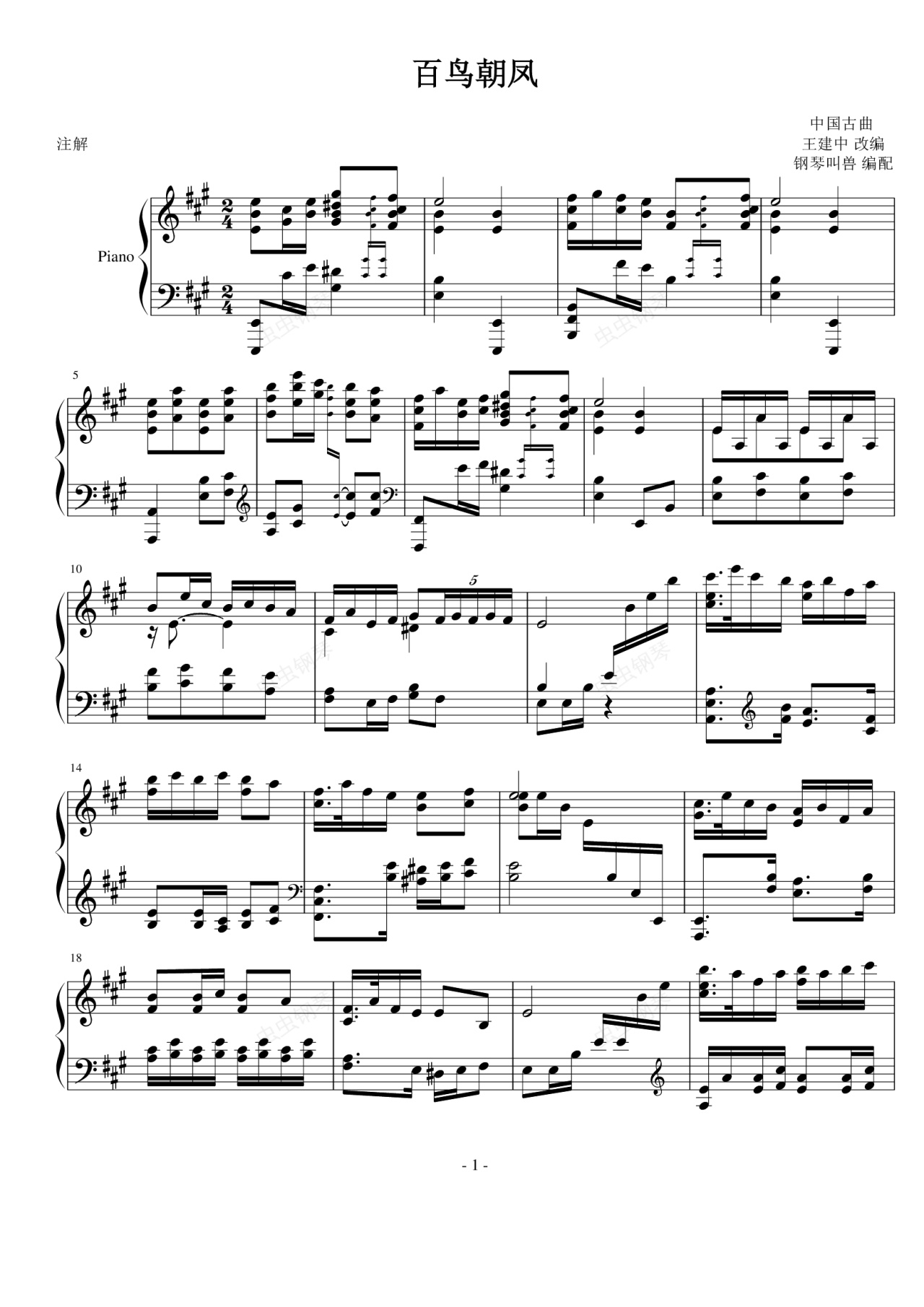 钢琴谱:百鸟朝凤