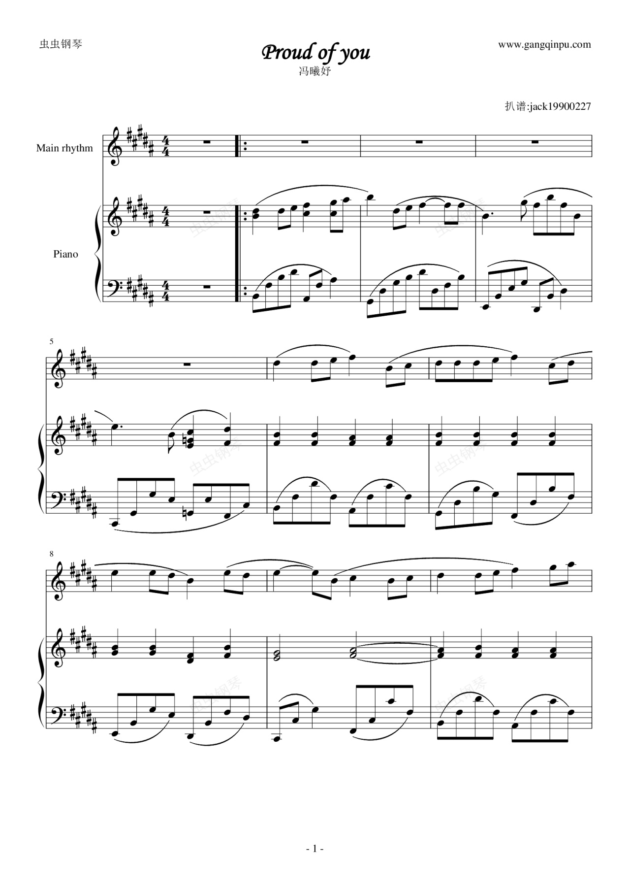 钢琴谱:Proud of you冯曦妤原版钢琴伴奏