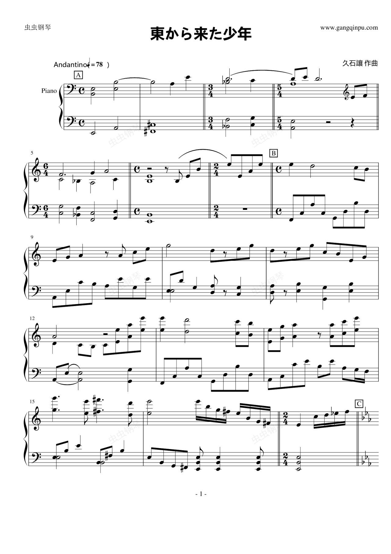 钢琴谱:《幽灵公主》原版配乐-8.東から来た少年