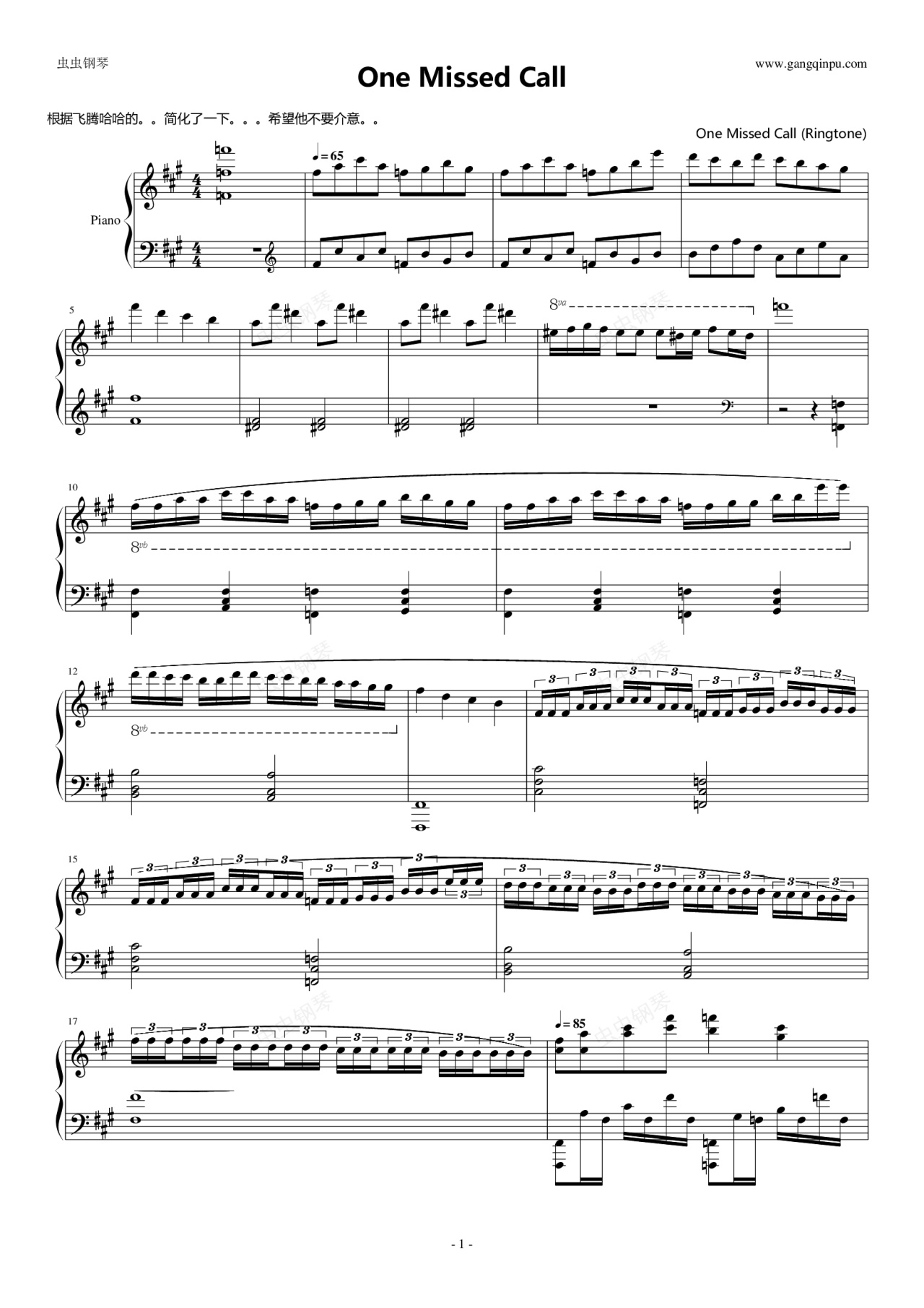 钢琴谱:鬼来电(简化版)。。郁闷。。