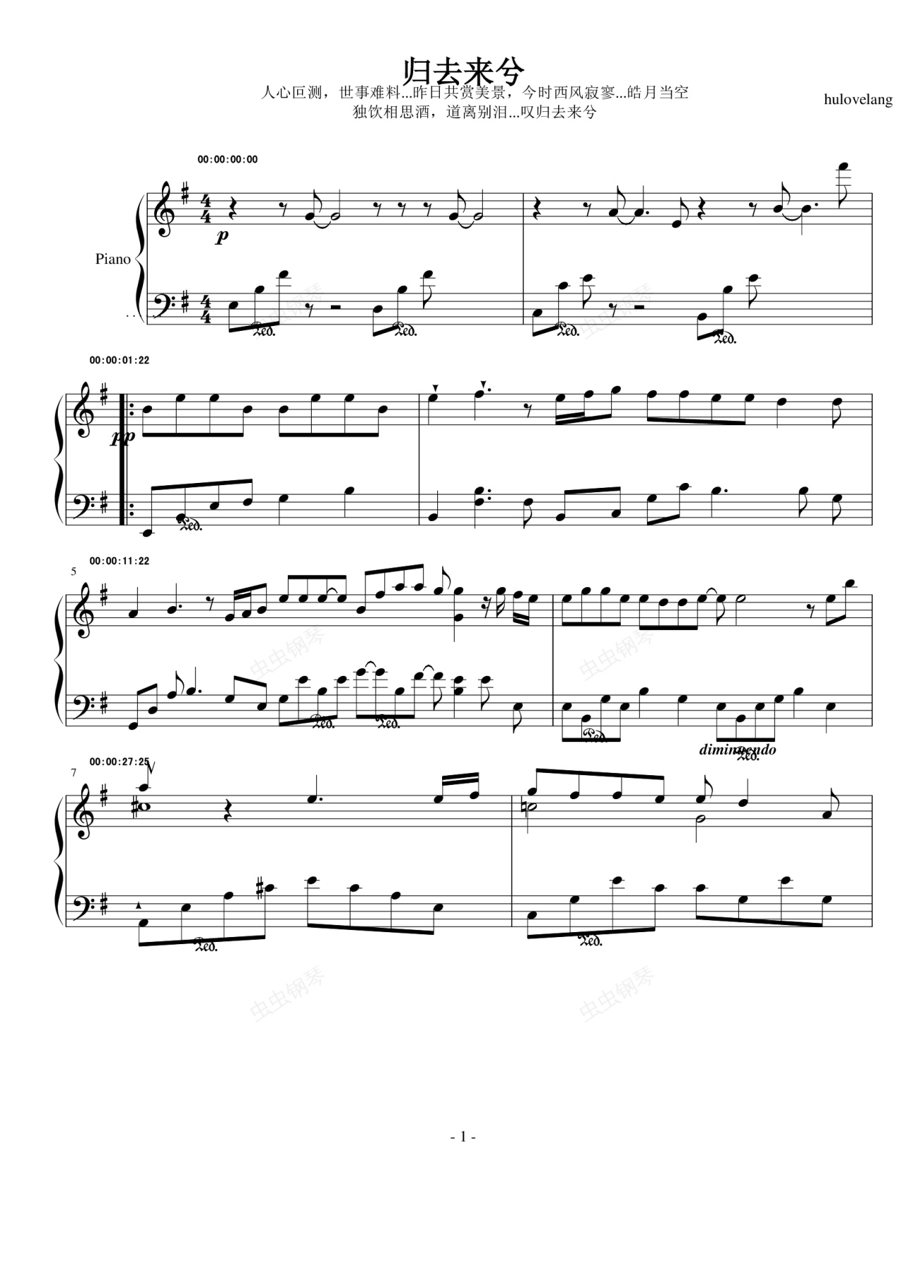 钢琴谱:归去来兮
