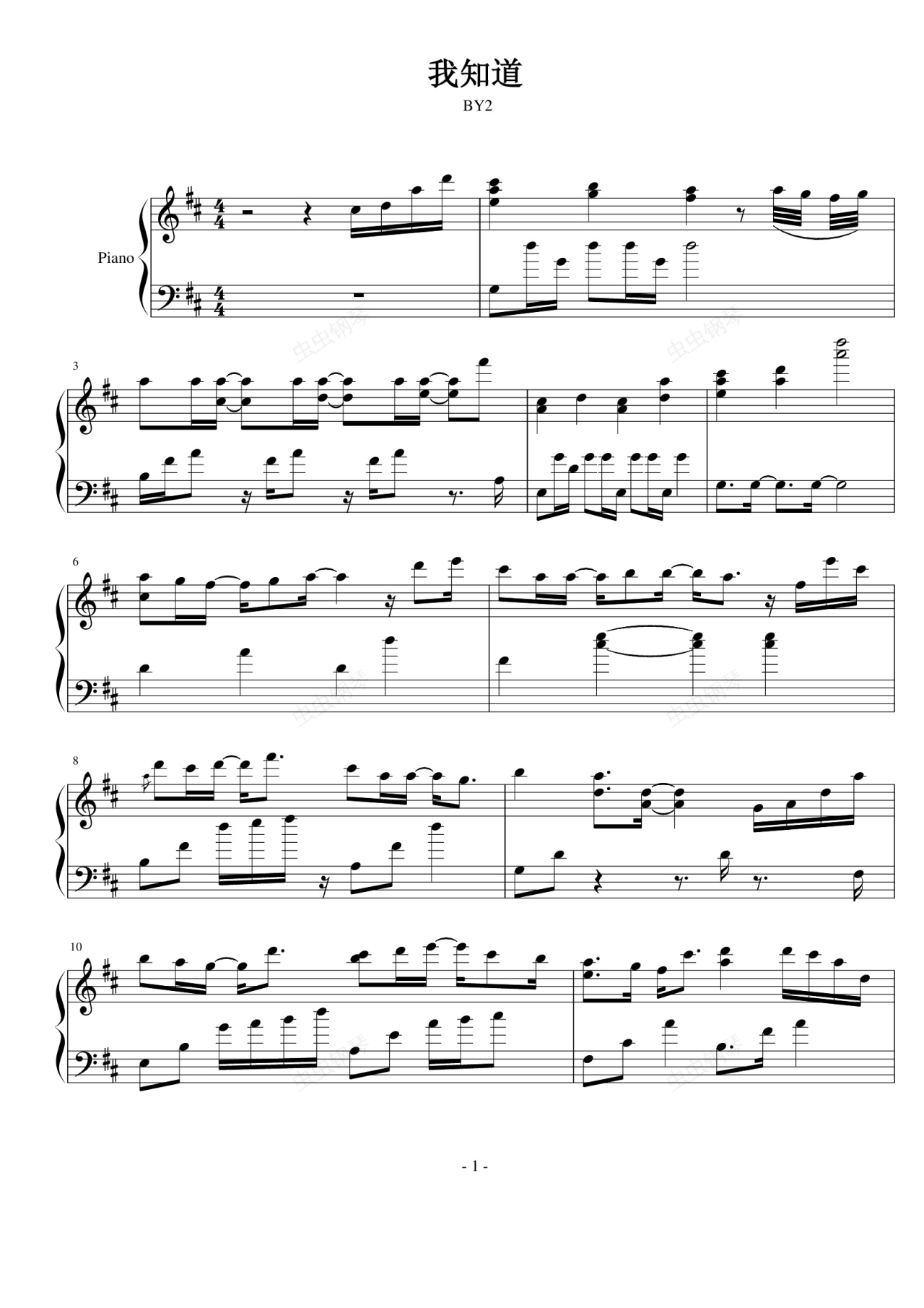 钢琴谱:我知道-修改版