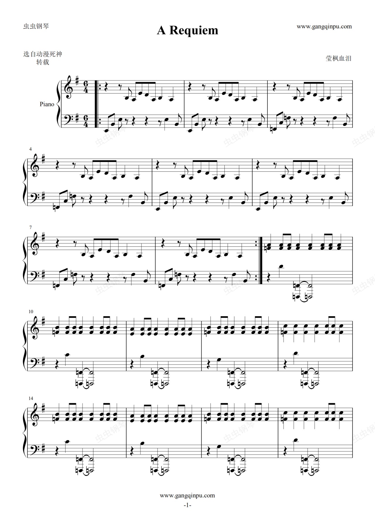 钢琴谱:A Requiem