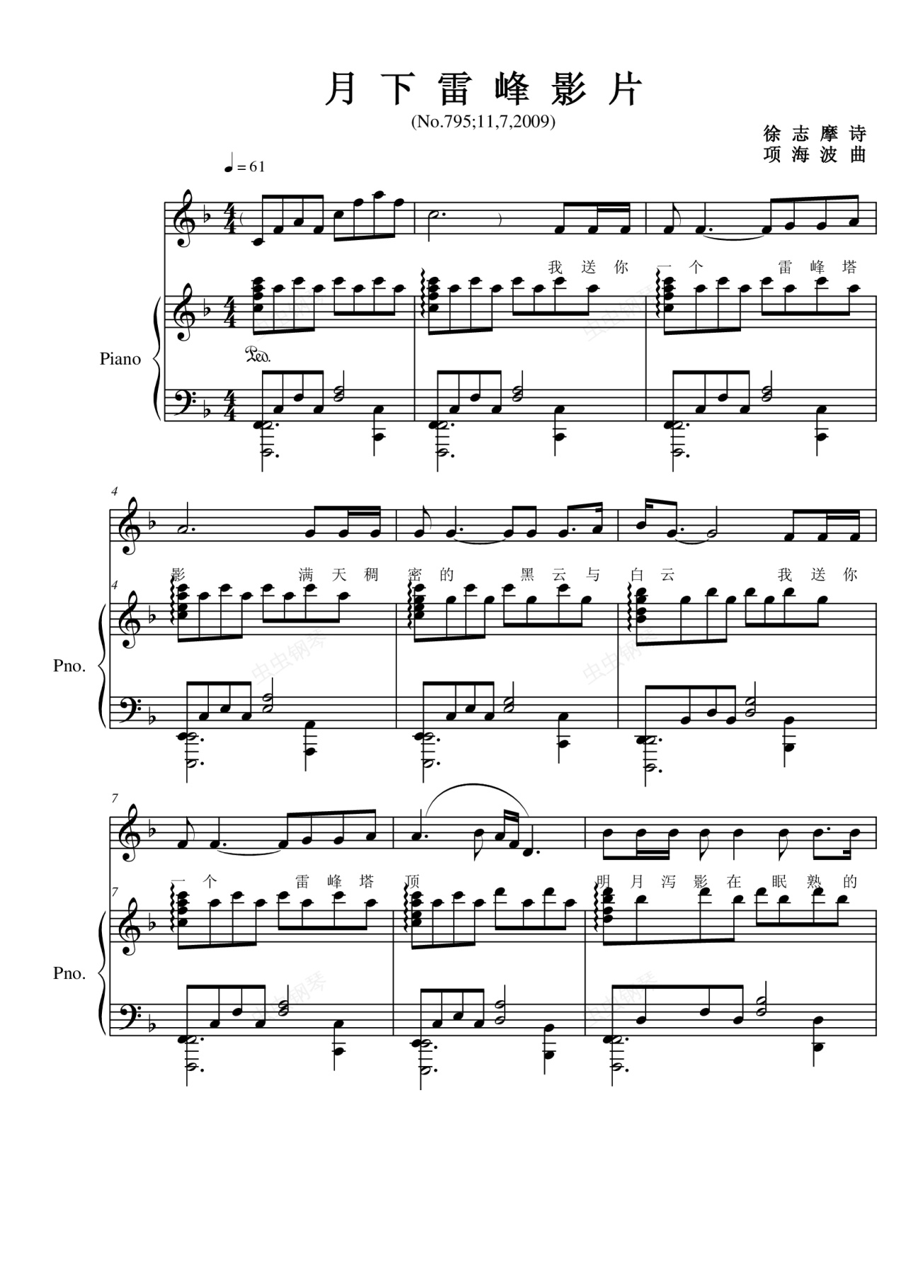 钢琴谱:月下雷峰影片(徐志摩诗)