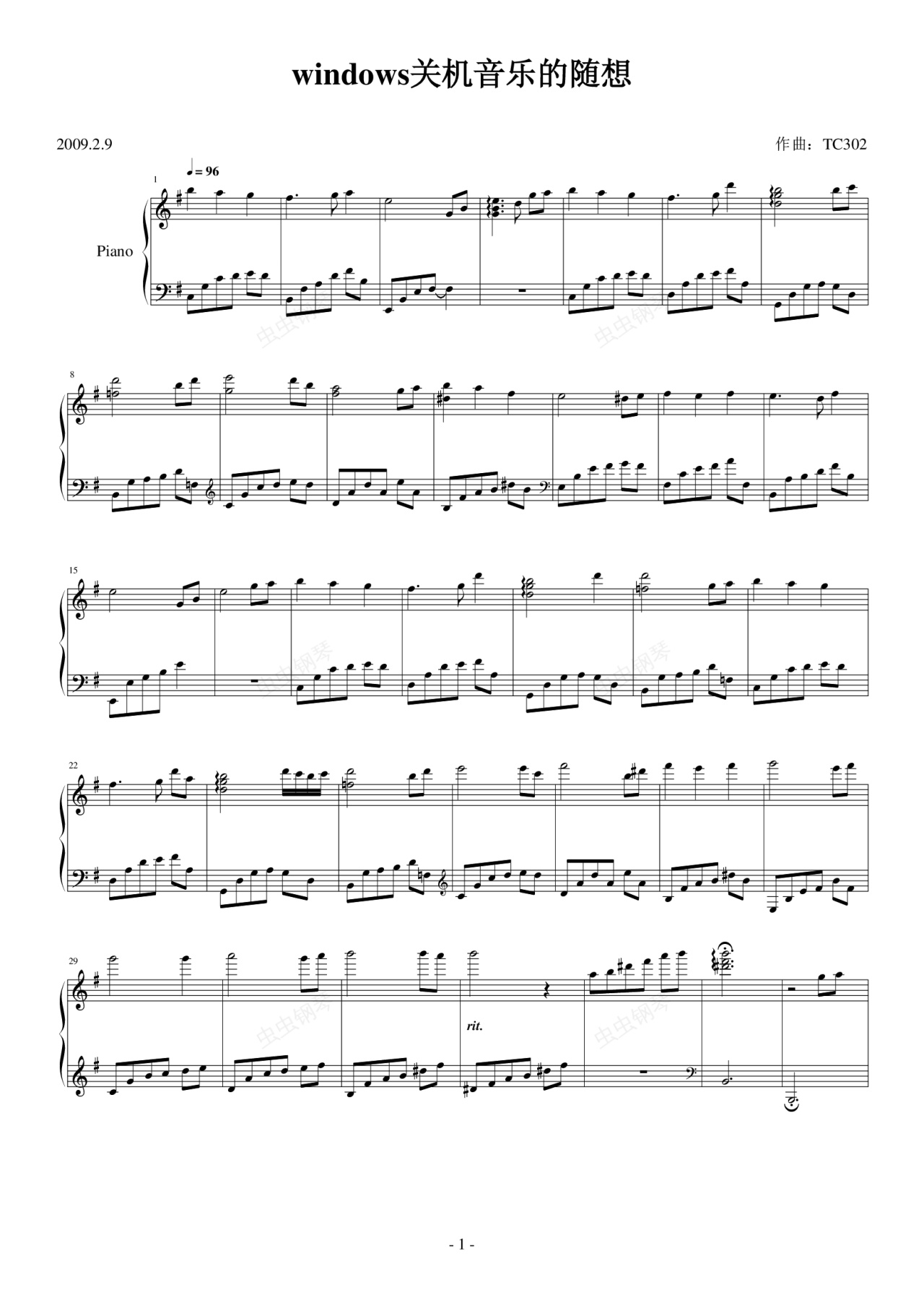 钢琴谱:windows关机音乐随想曲