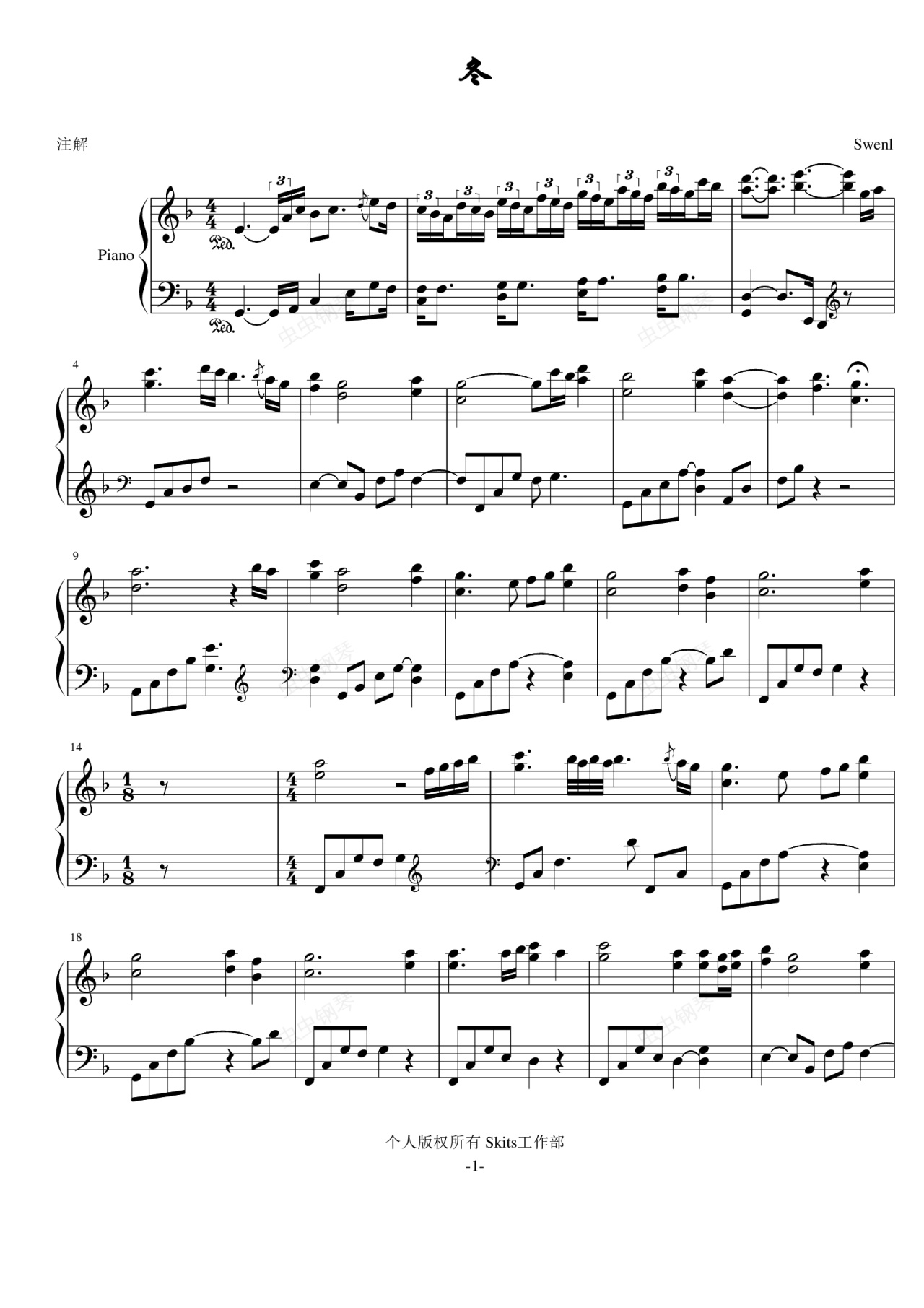 钢琴谱:冬