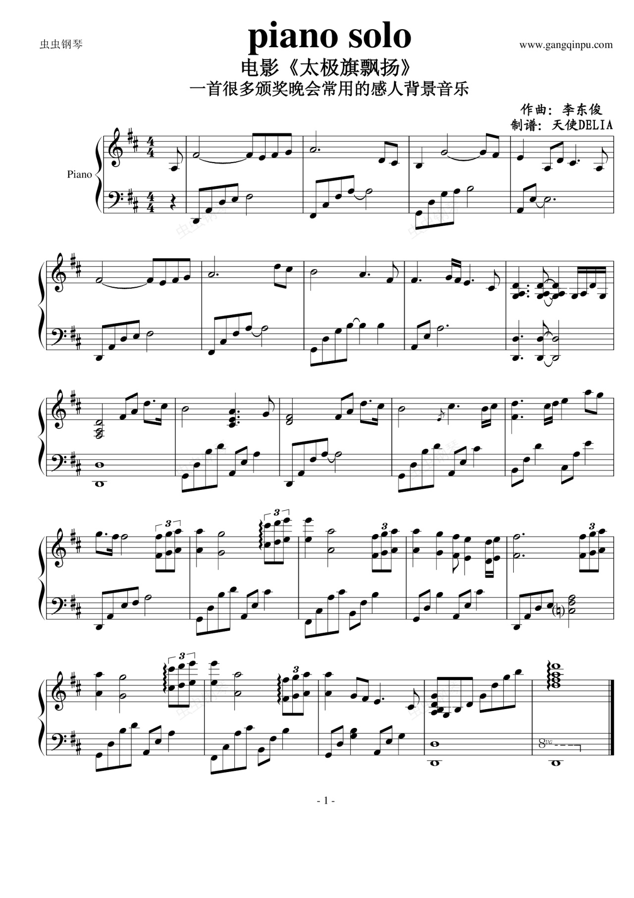 钢琴谱:piano solo电影《太极旗飘扬》