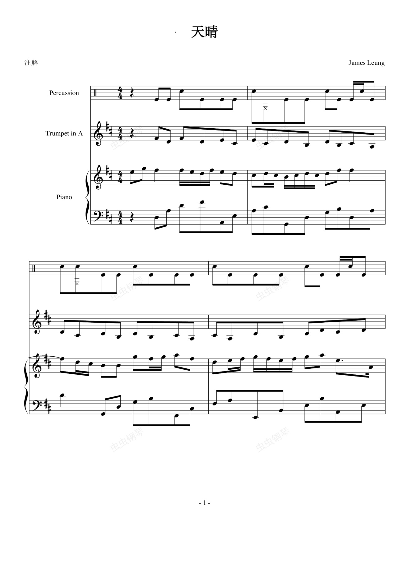 钢琴谱:天晴