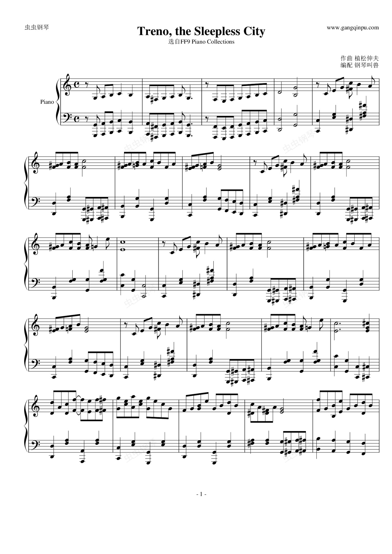 钢琴谱:Treno, the Sleepless City-最终幻想9