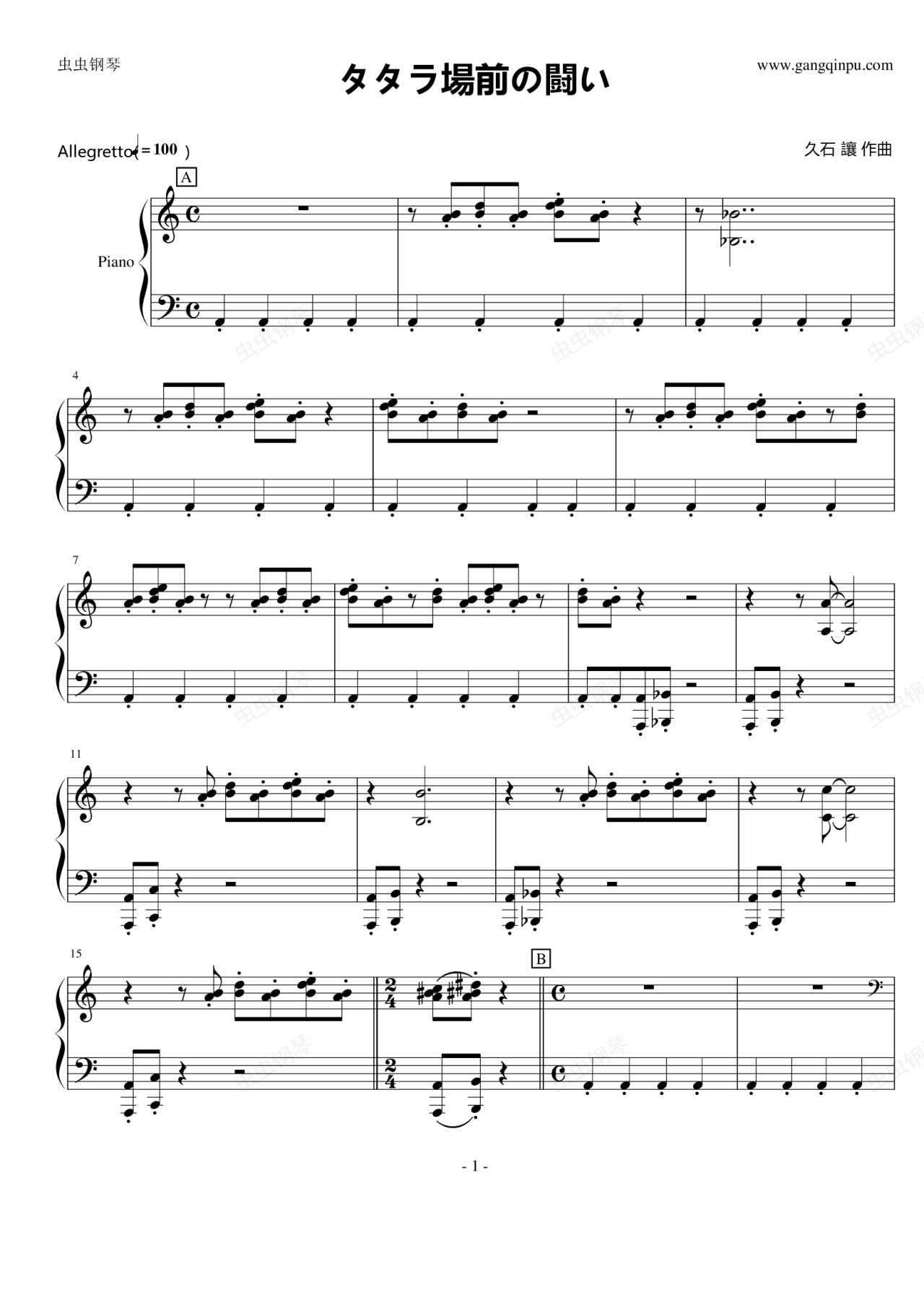 钢琴谱:《幽灵公主》原版配乐-10.タタラ場前の闘い