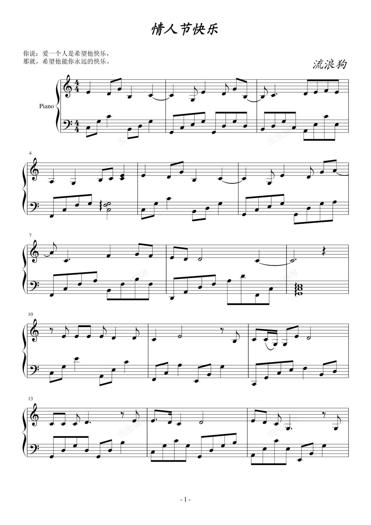 钢琴谱:情人节快乐