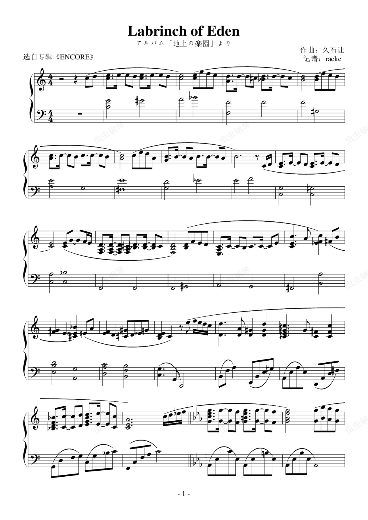 钢琴谱:05.Labyrince of Eden(アルバム「地上の楽園」より)