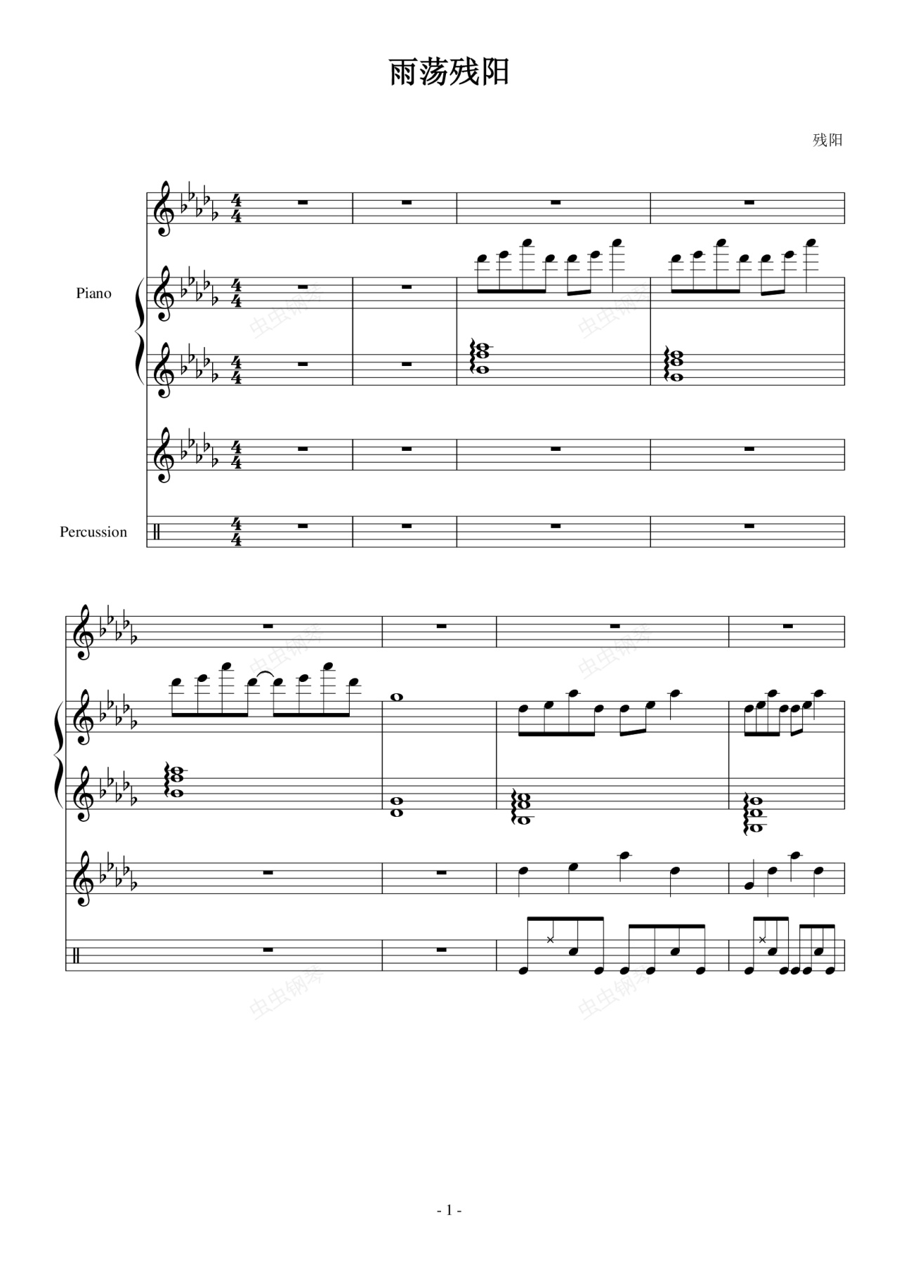 钢琴谱:雨荡残阳