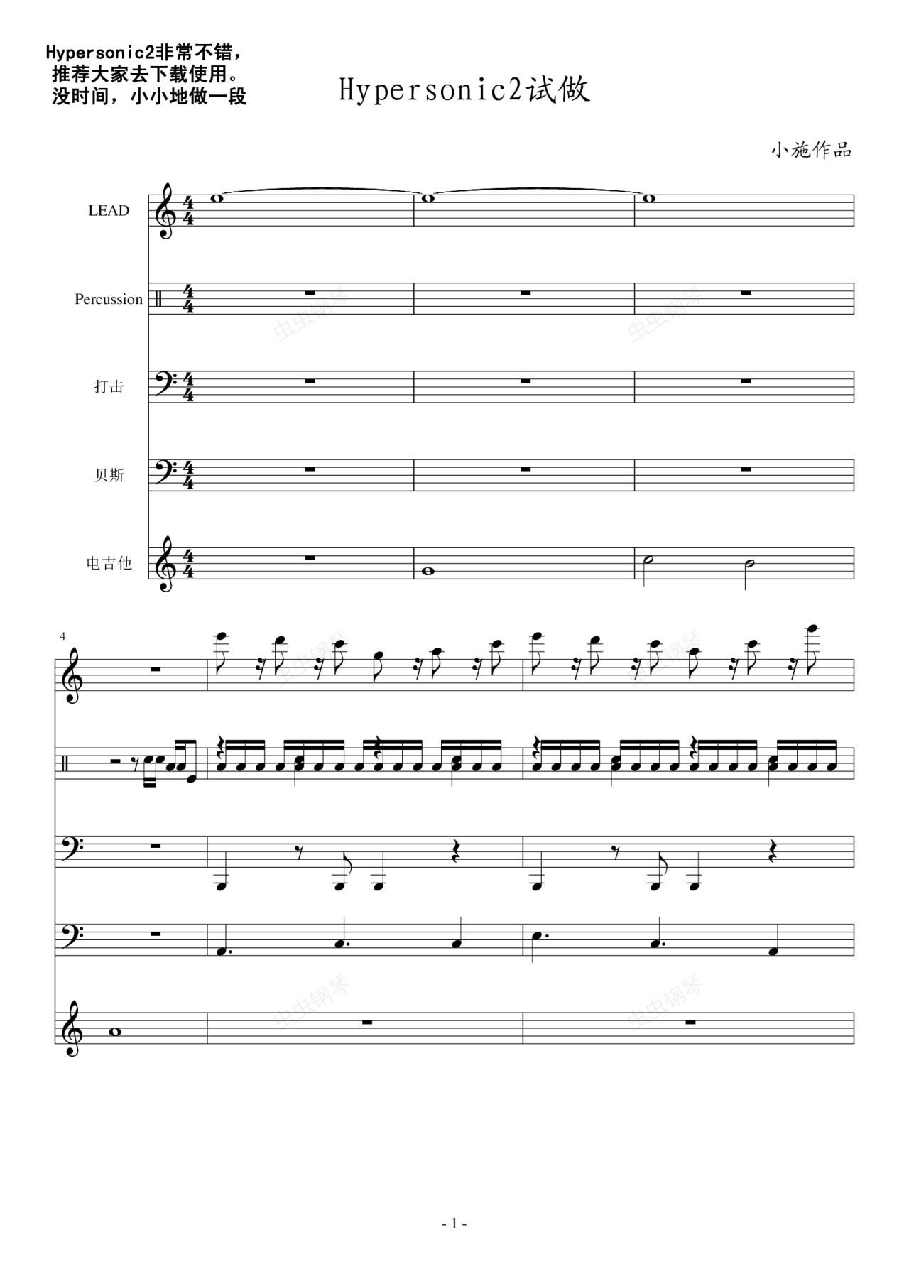 钢琴谱:Hypersonic2试做音乐(音色还不错的,推荐大家下载使用)