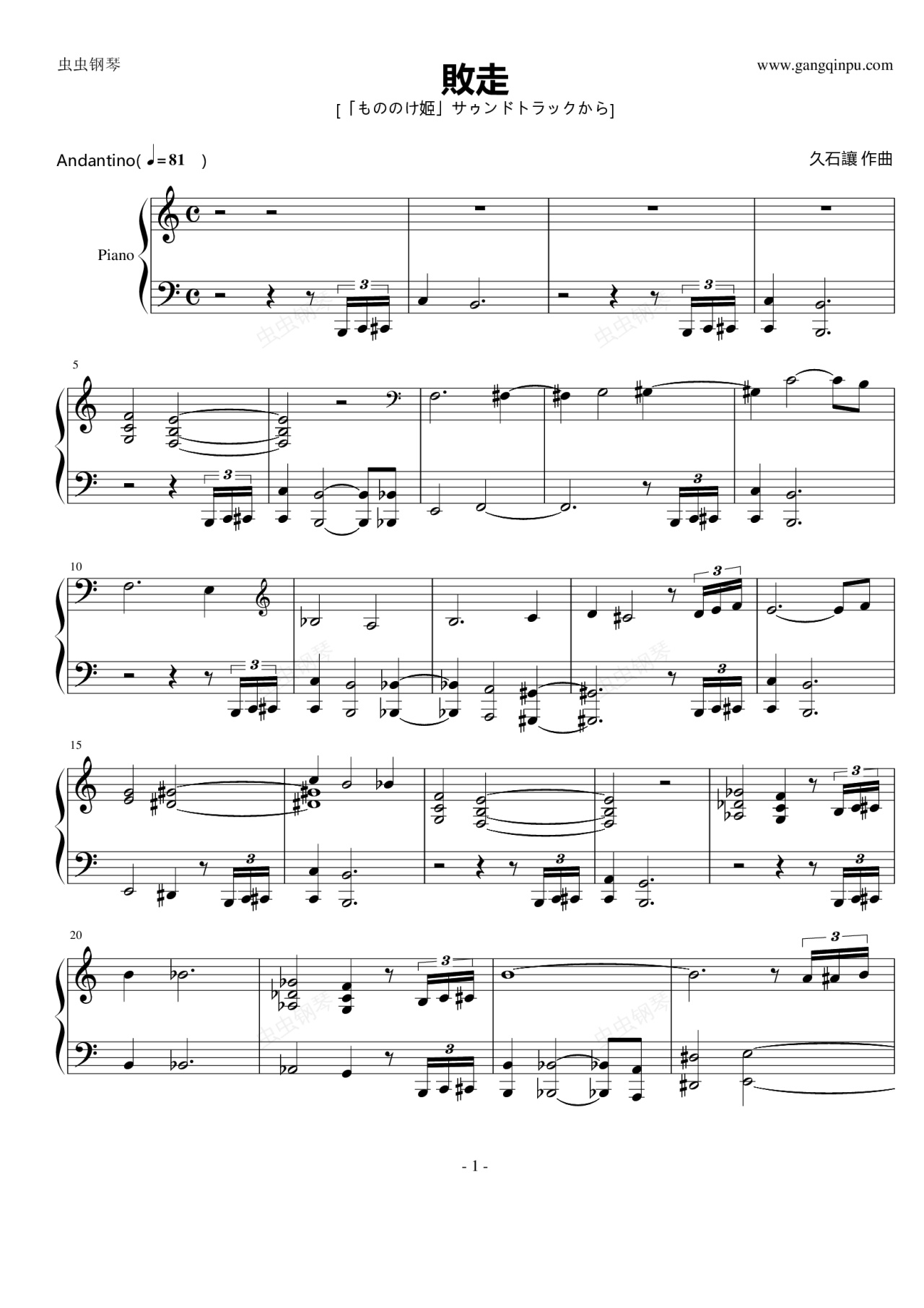 钢琴谱:《幽灵公主》原版配乐-11.敗走