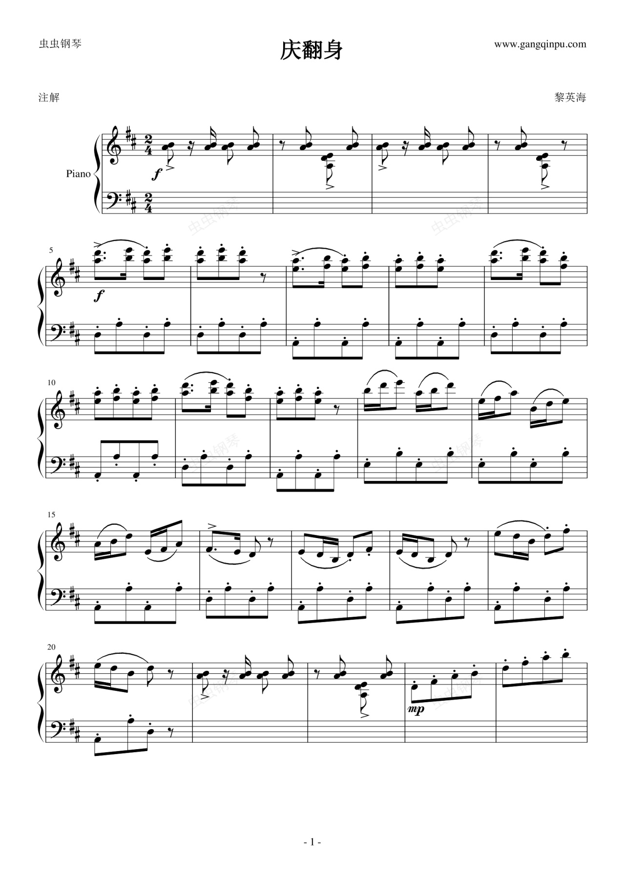 钢琴谱:庆翻身-叮当恋铜锣烧制作版