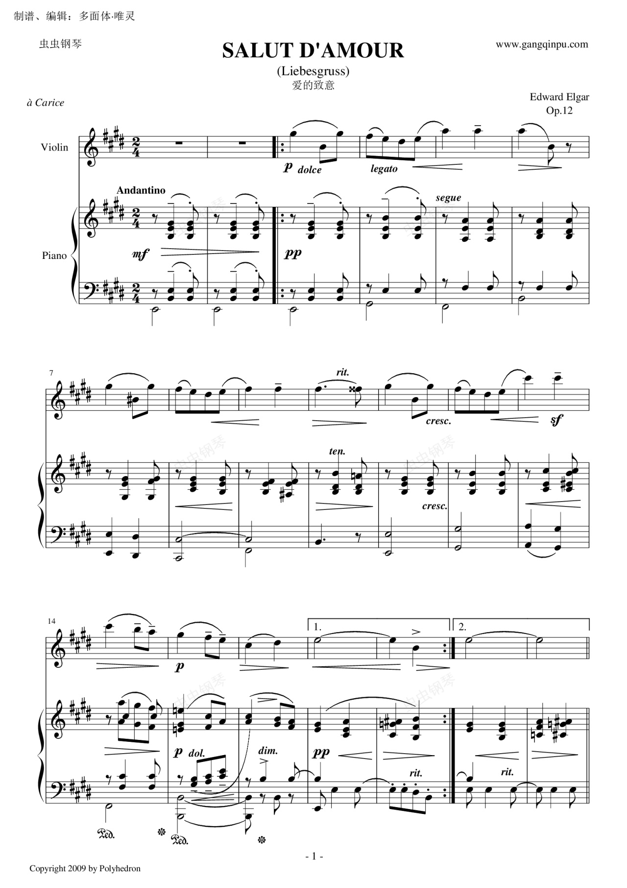 钢琴谱:爱的致意 SALUT D'AMOUR