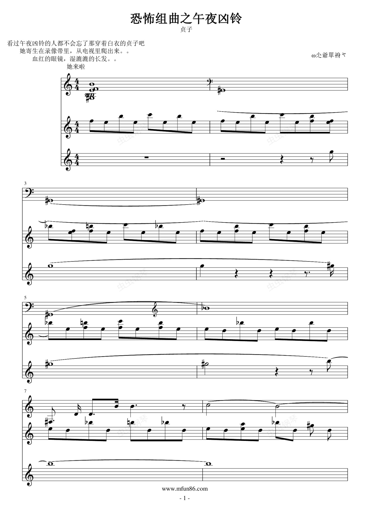 钢琴谱:恐怖组曲之午夜凶铃--贞子
