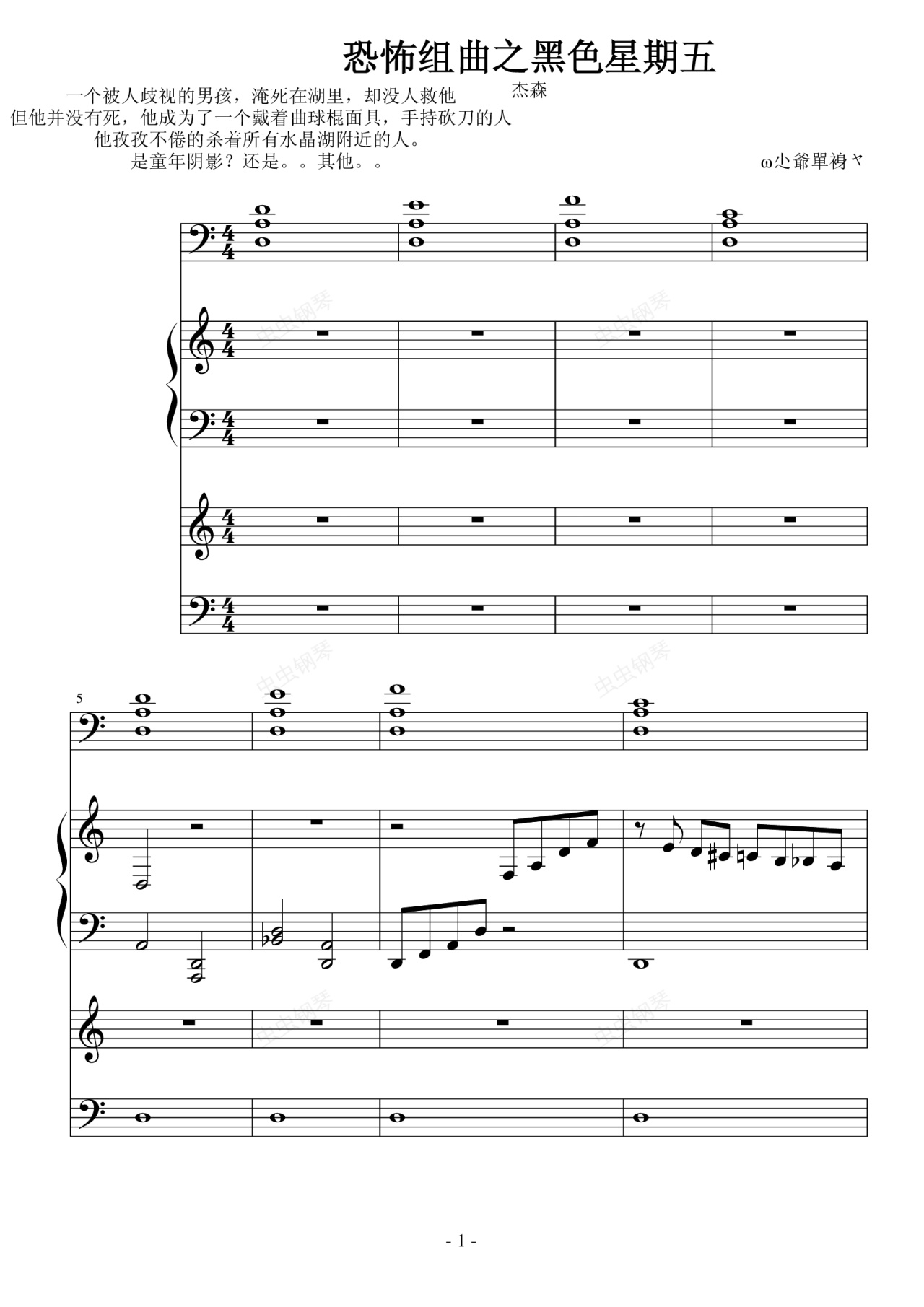 钢琴谱:恐怖组曲之黑色星期五--杰森