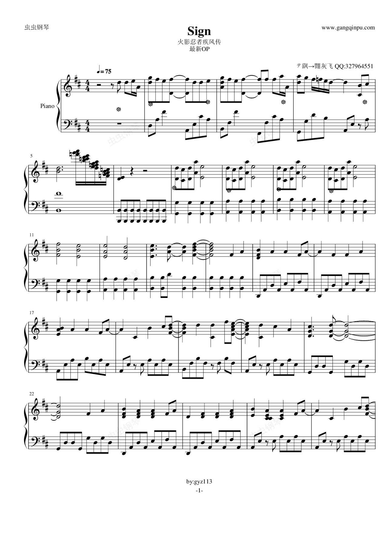 钢琴谱:Sign-火影忍者最新OP—飖翾