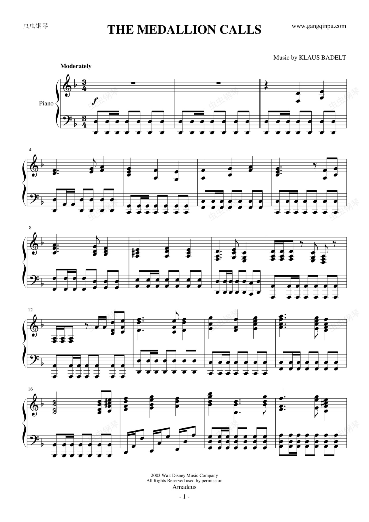 钢琴谱:加勒比海盗pirates_of_the_Caribbean——THE MEDALLION CALLS