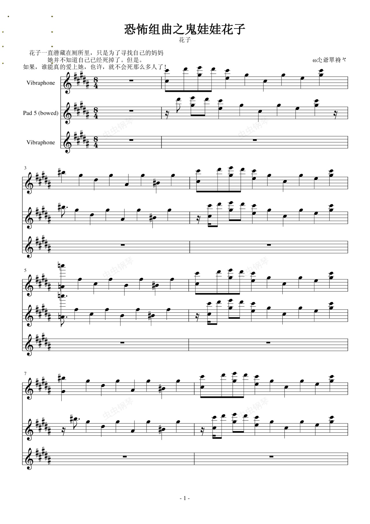 钢琴谱:恐怖组曲之鬼娃花子--花子