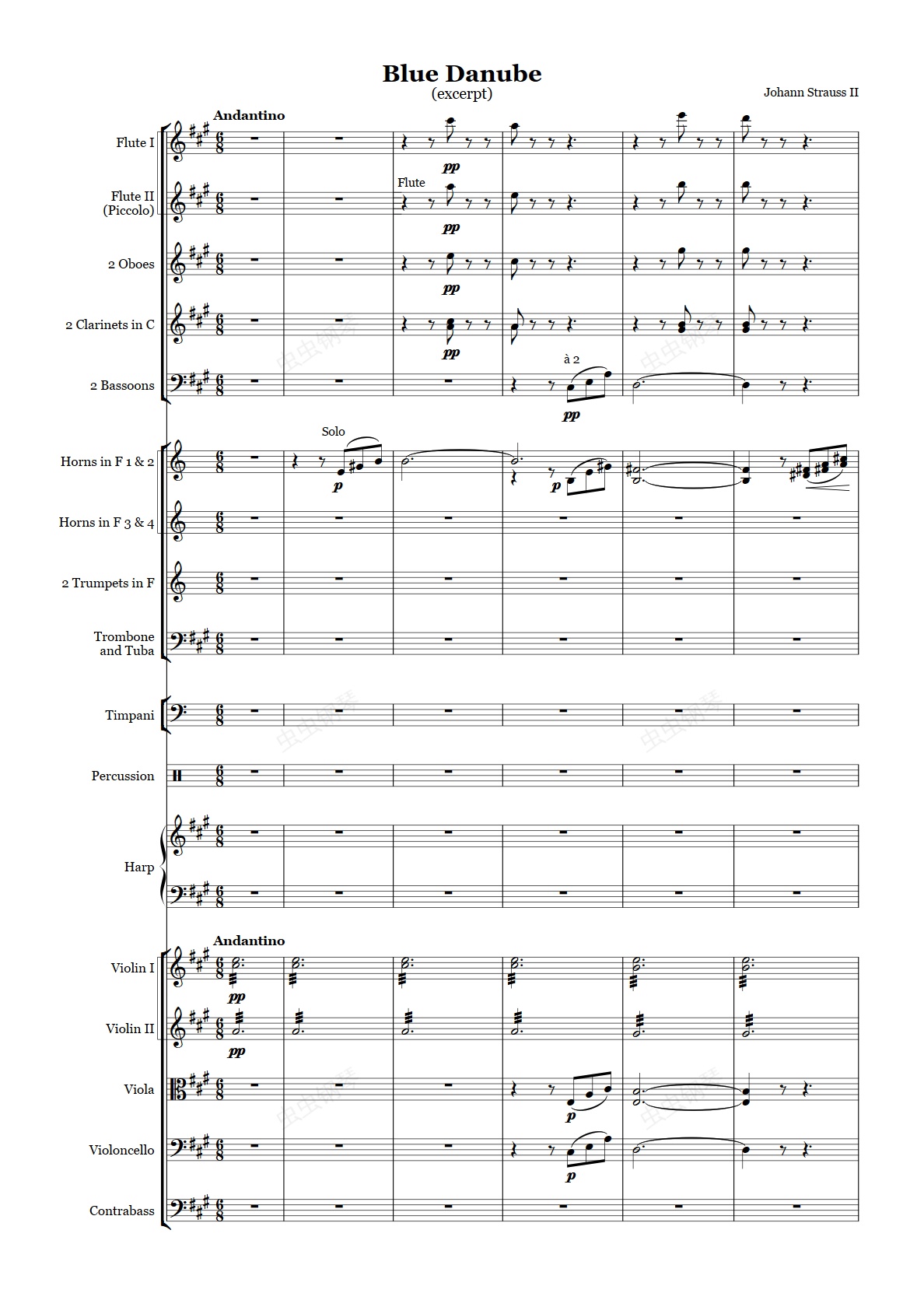 蓝色多瑙河(作品第314号)乃“圆舞曲之王”小约翰·施特劳斯最负盛名的圆舞曲,德语曲名翻译为“在美丽的蓝色多瑙河上”(An der   Donau) ,人称“奥地利的第二国歌”,作于1867年