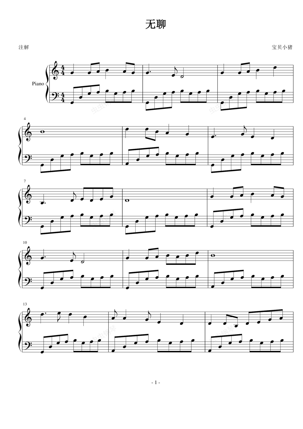 钢琴谱:无聊