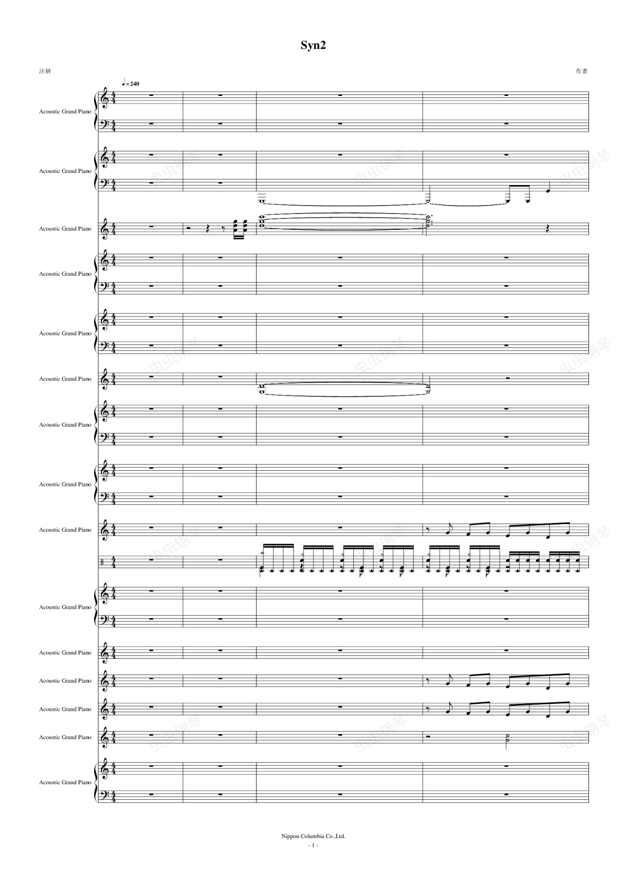 钢琴谱:七龙珠Z结尾曲(总谱)