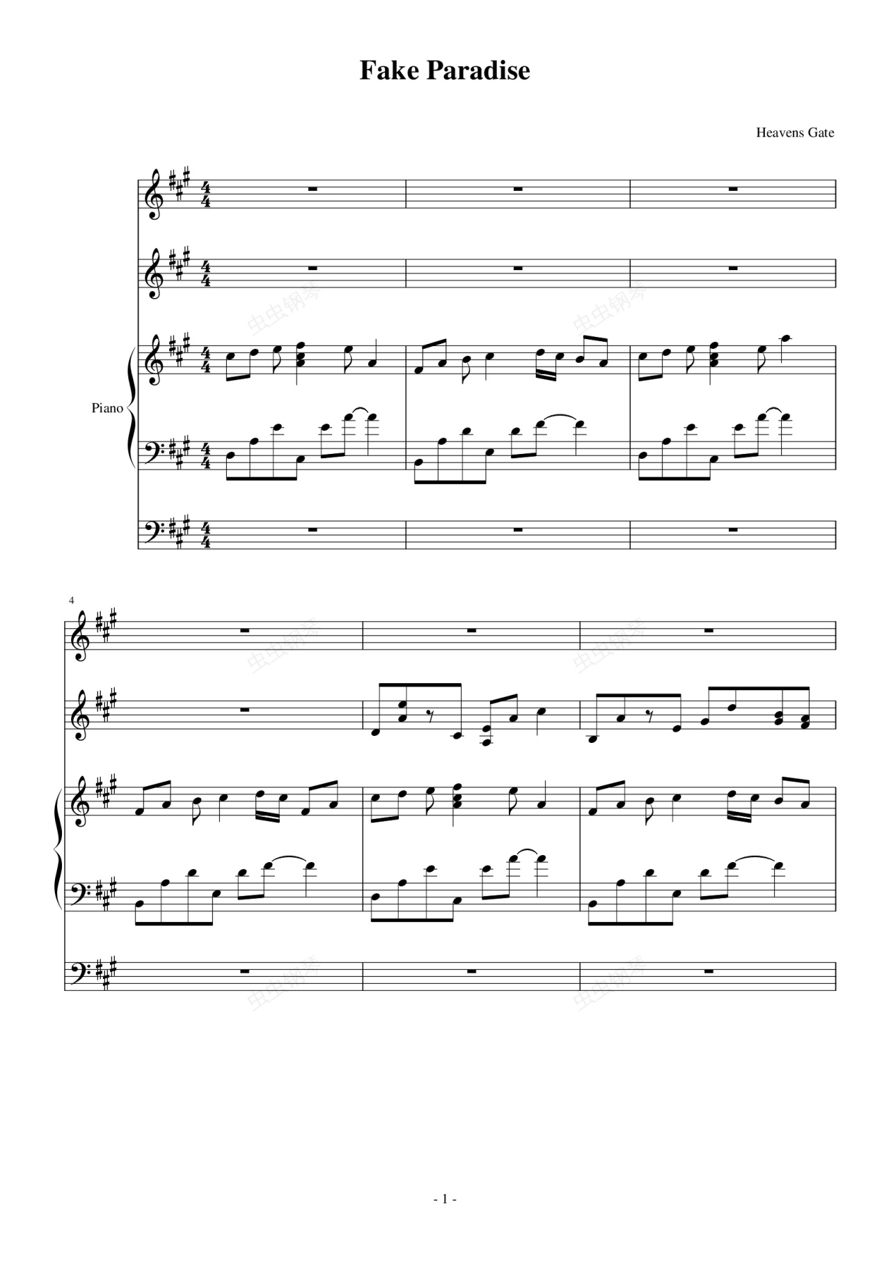 钢琴谱:fake paradise