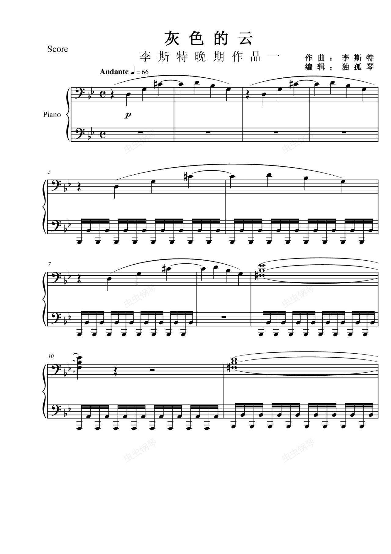 钢琴谱:灰色的云-李斯特