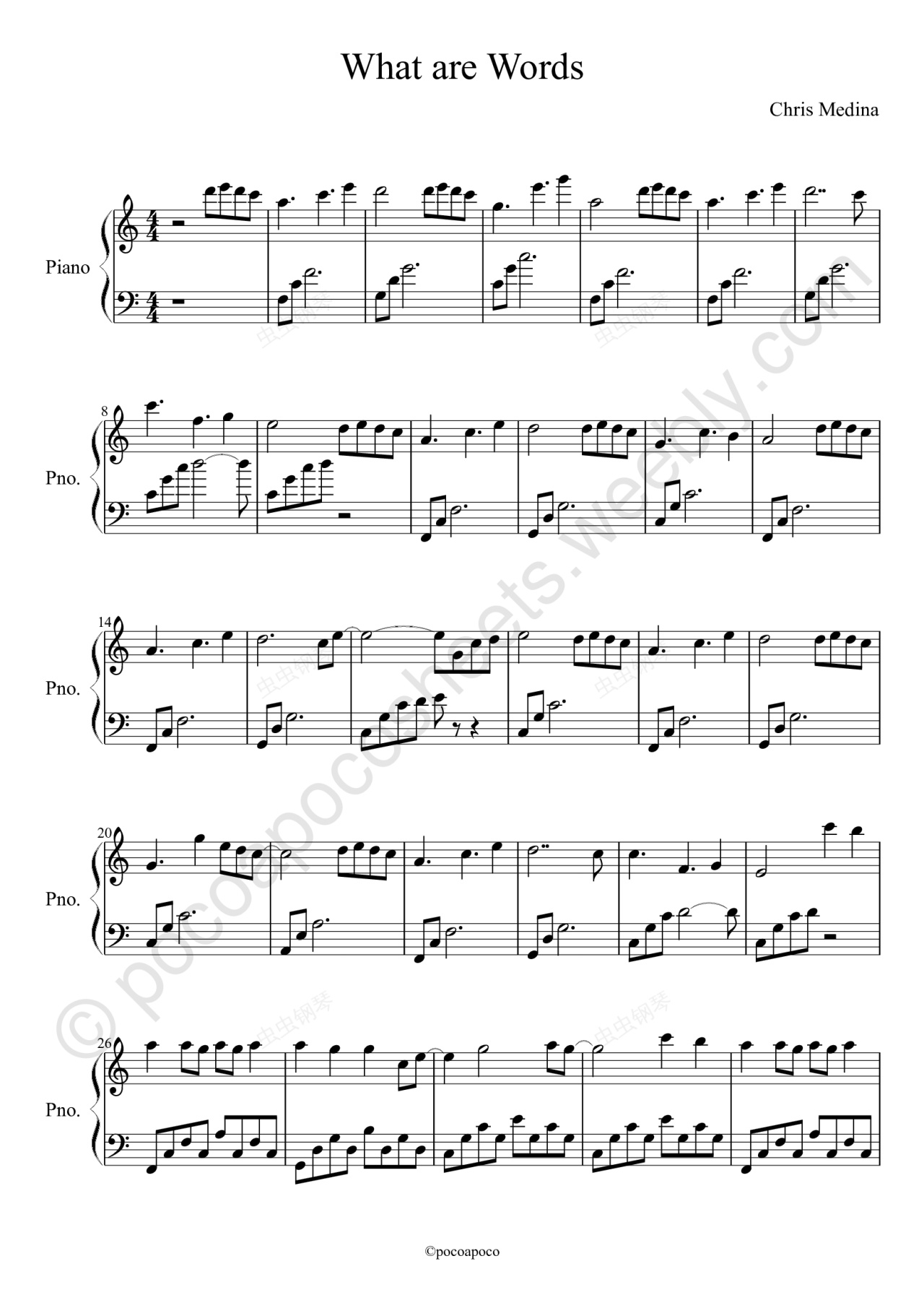 钢琴谱:What are words