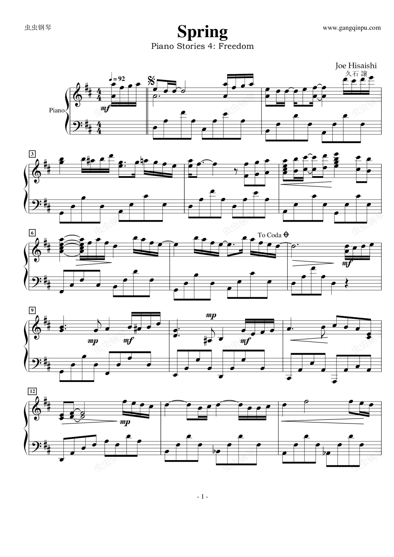 钢琴谱:·Spring·专辑原版·(Original Version in Album)