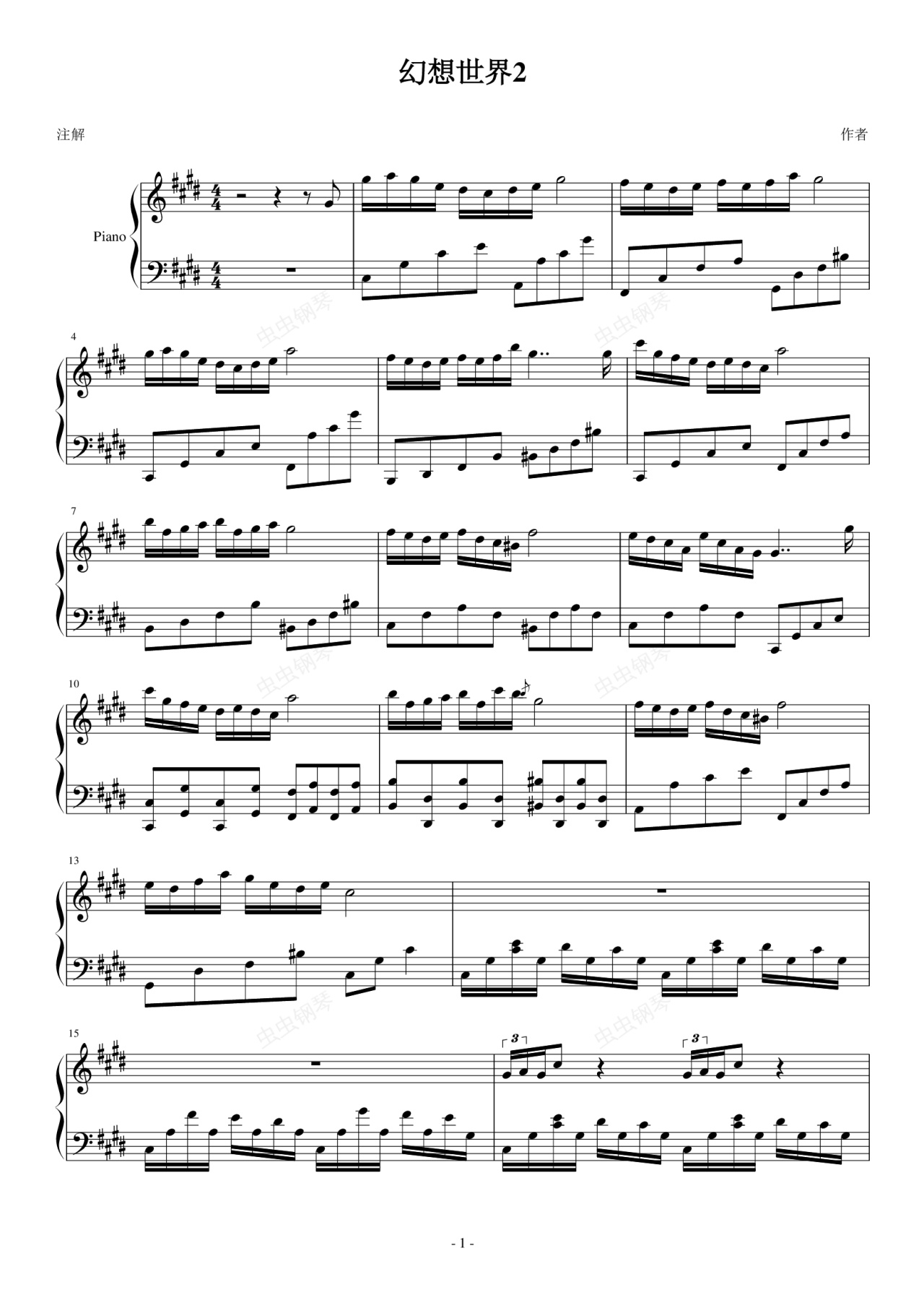 钢琴谱:幻想世界