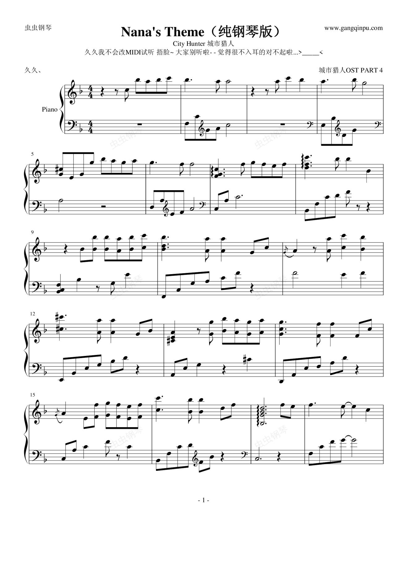 钢琴谱:Nanas Theme韩剧城市猎人纯钢琴演奏