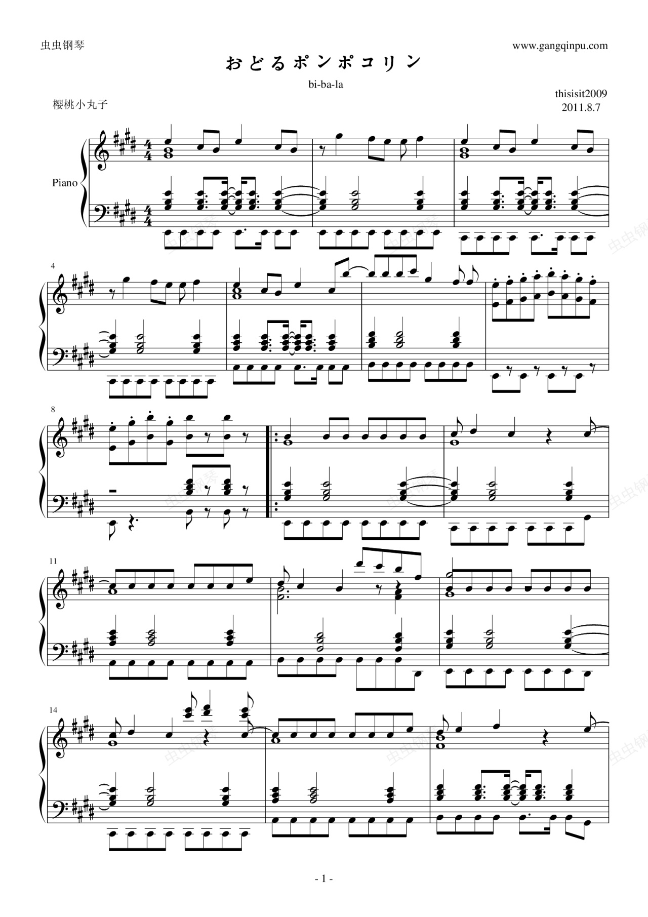 钢琴谱:樱桃小丸子主题曲bi ba la
