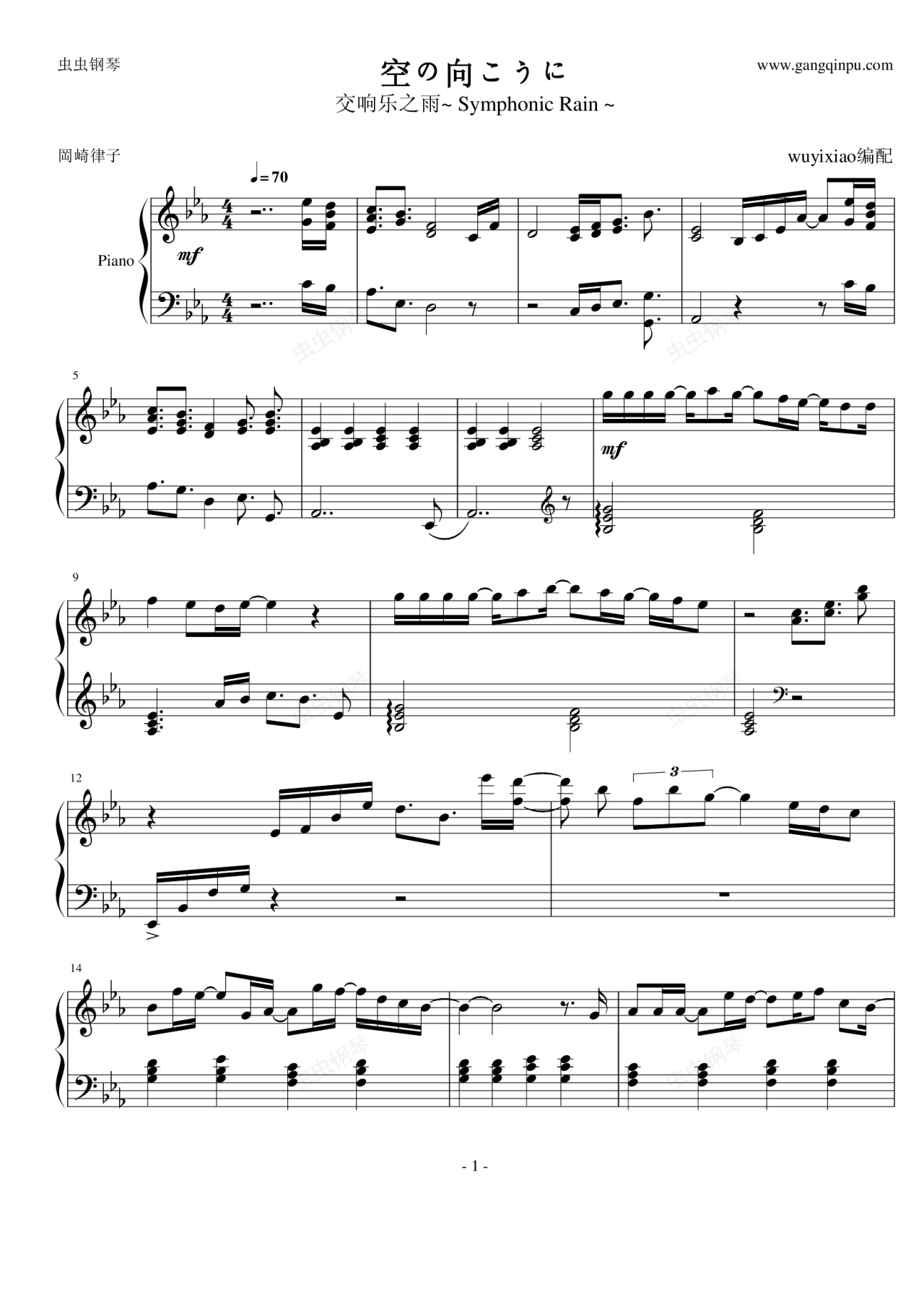 钢琴谱:空の向こうに(交响乐之雨-岡崎律子)